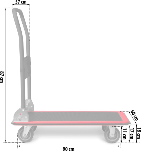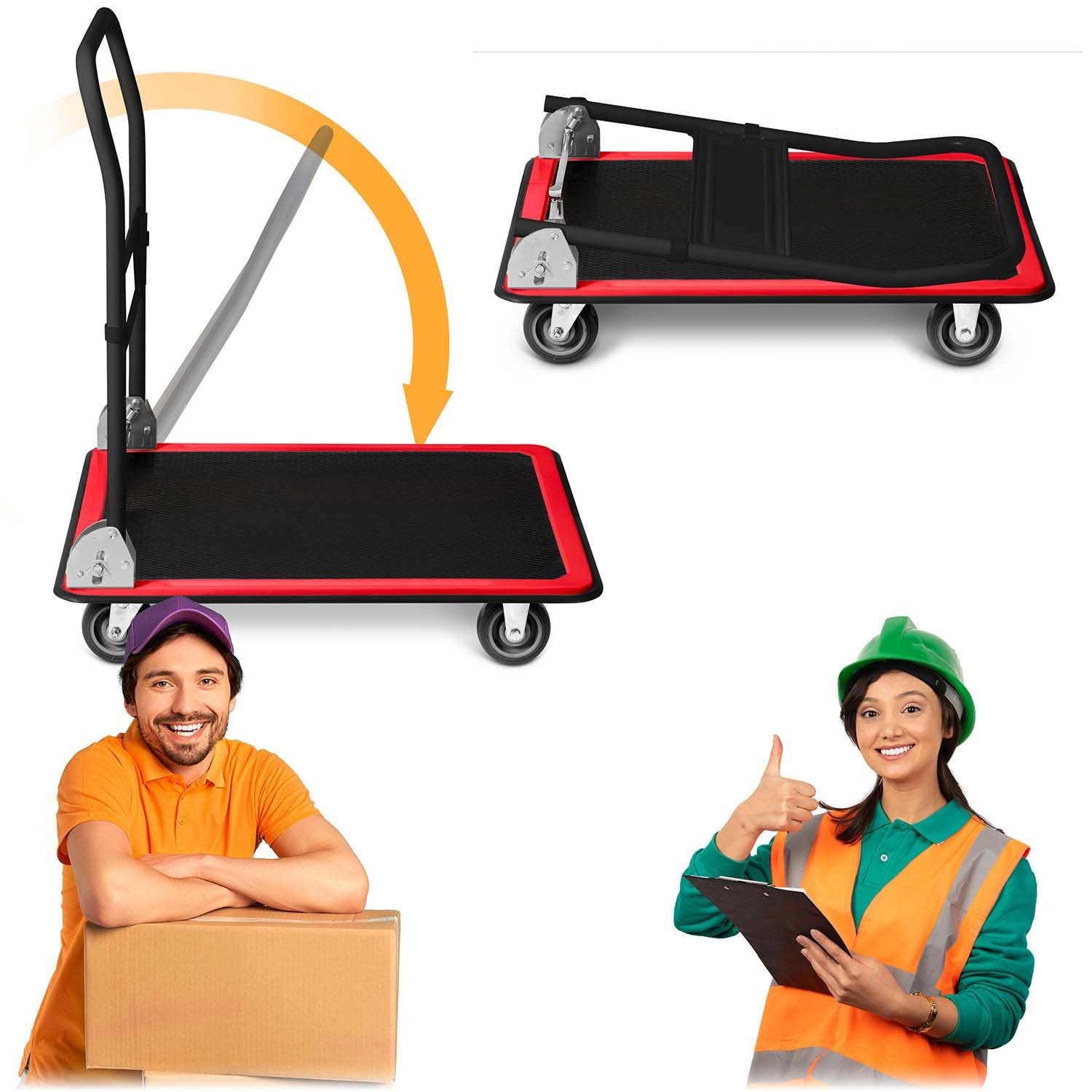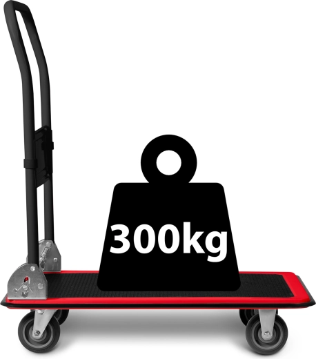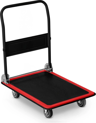 Chariot plateau pliant pour le transport de charges 300 kg – noir‑rouge