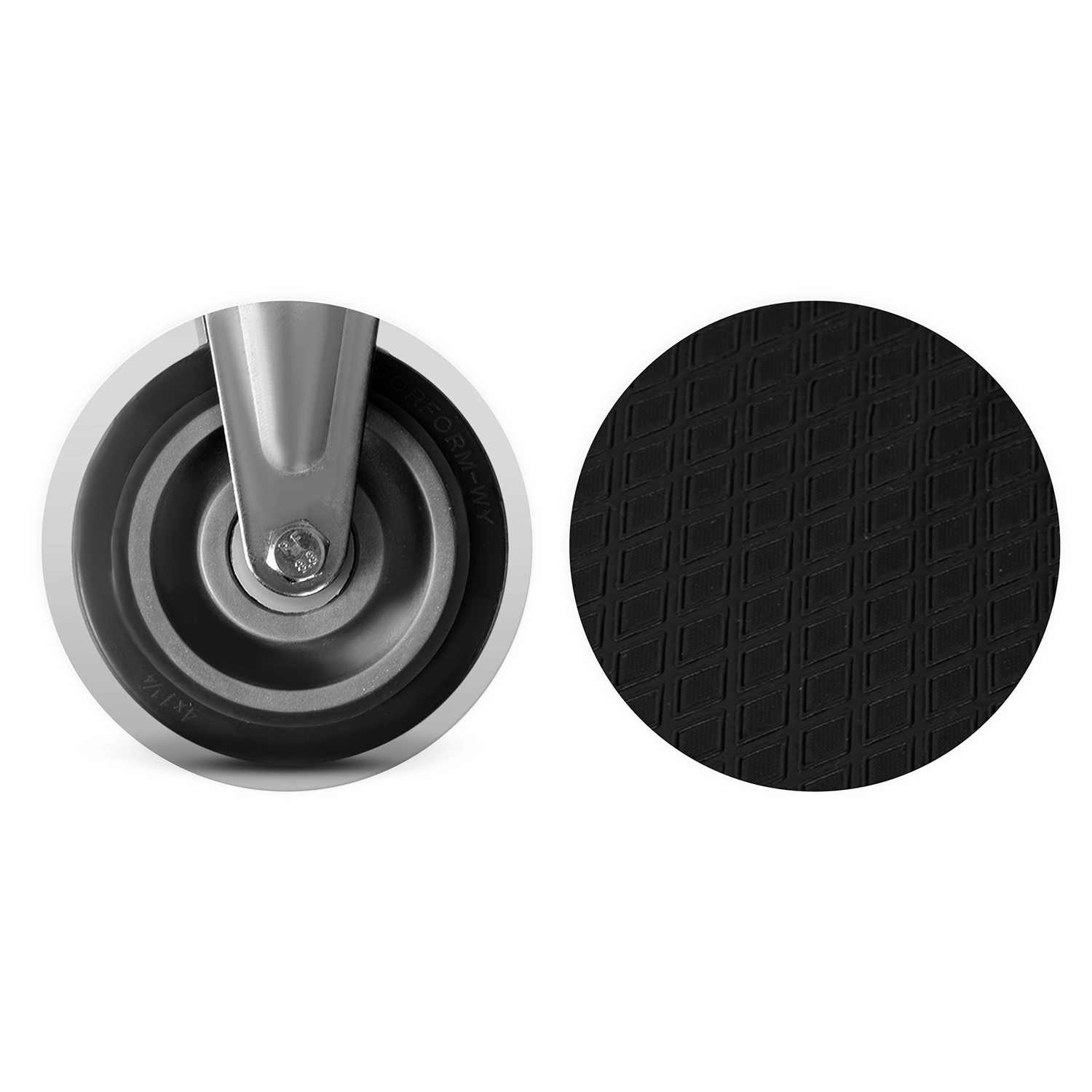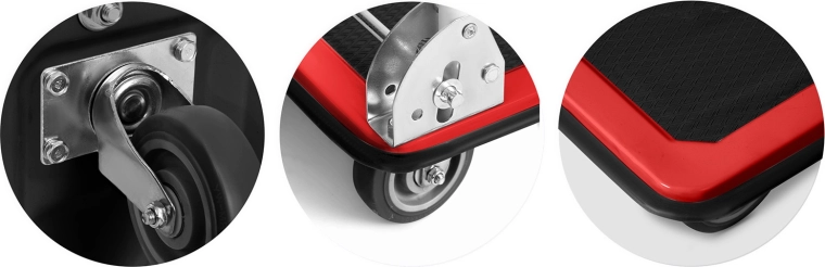 • Maniabilité aisée – roues en caoutchouc pivotantes, respectueuses des sols et stables.