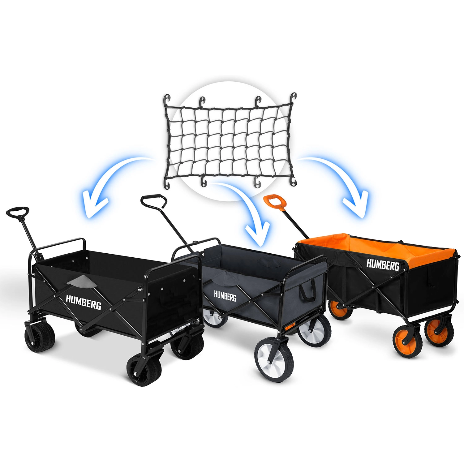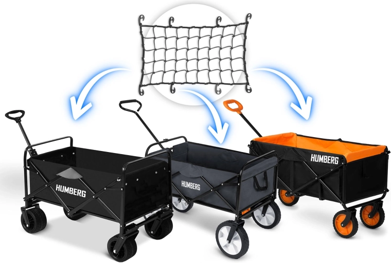 Grâce à ses dimensions universelles, il est compatible avec plusieurs modèles de chariots HUMBERG et avec d’autres chariots de taille comparable. Idéal pour l’équipement de plage, le matériel de sport, les kits de pique-nique et les outils de jardin – tout reste bien en place.