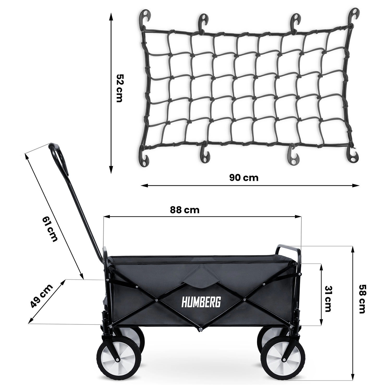 Chariot de transport pliant avec filet de sécurité 80 l HUMBERG