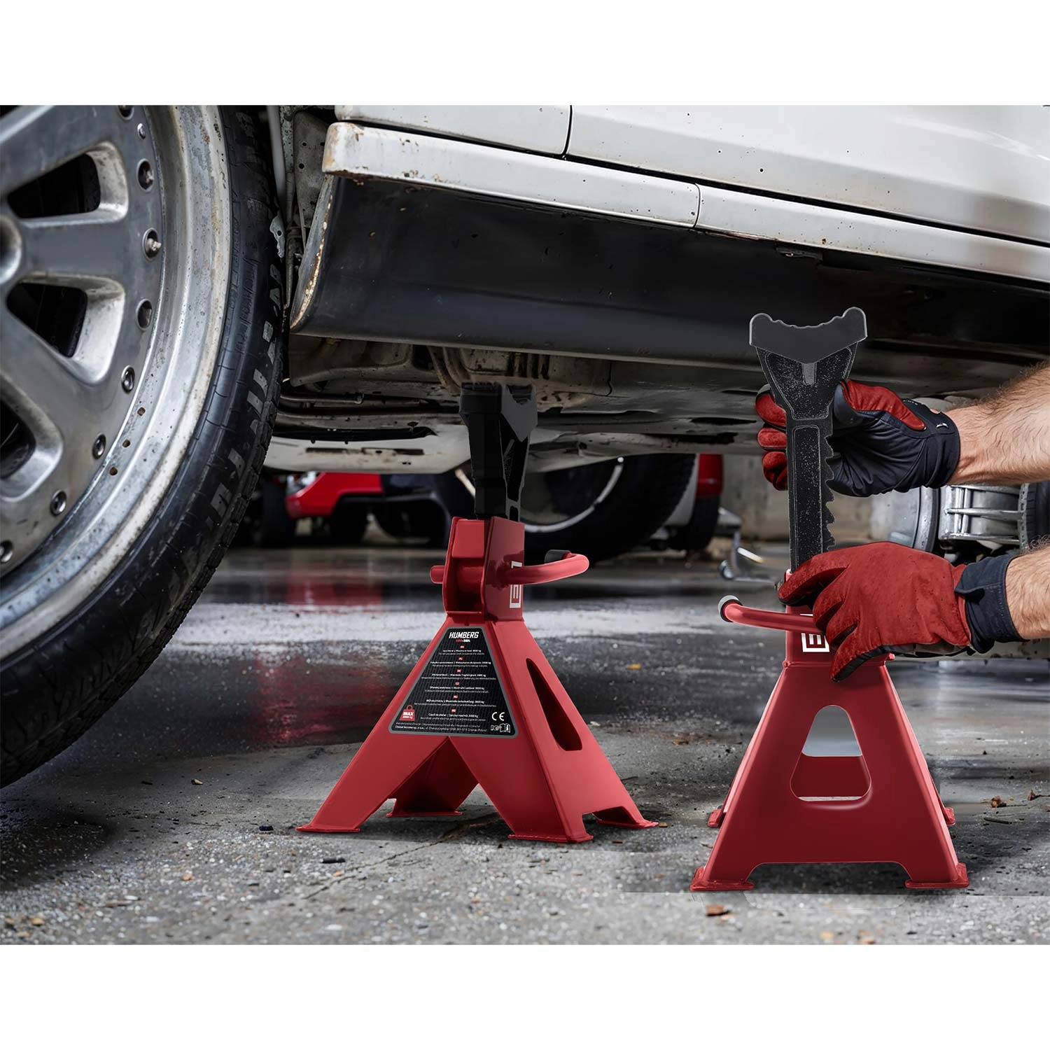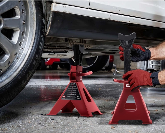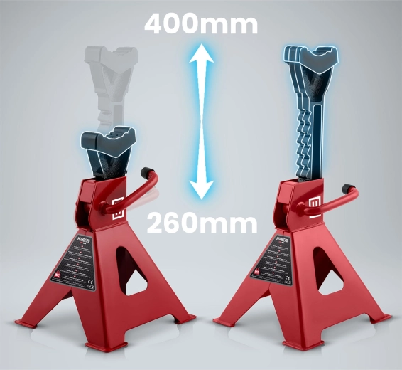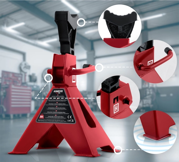Chandelles fiables et durables, idéales pour le garage domestique comme pour l’atelier professionnel. Le réglage de hauteur à cliquet permet un positionnement rapide et sûr, tandis que les embouts en caoutchouc minimisent le risque de rayures ou d’enfoncement des points d’appui de la carrosserie.