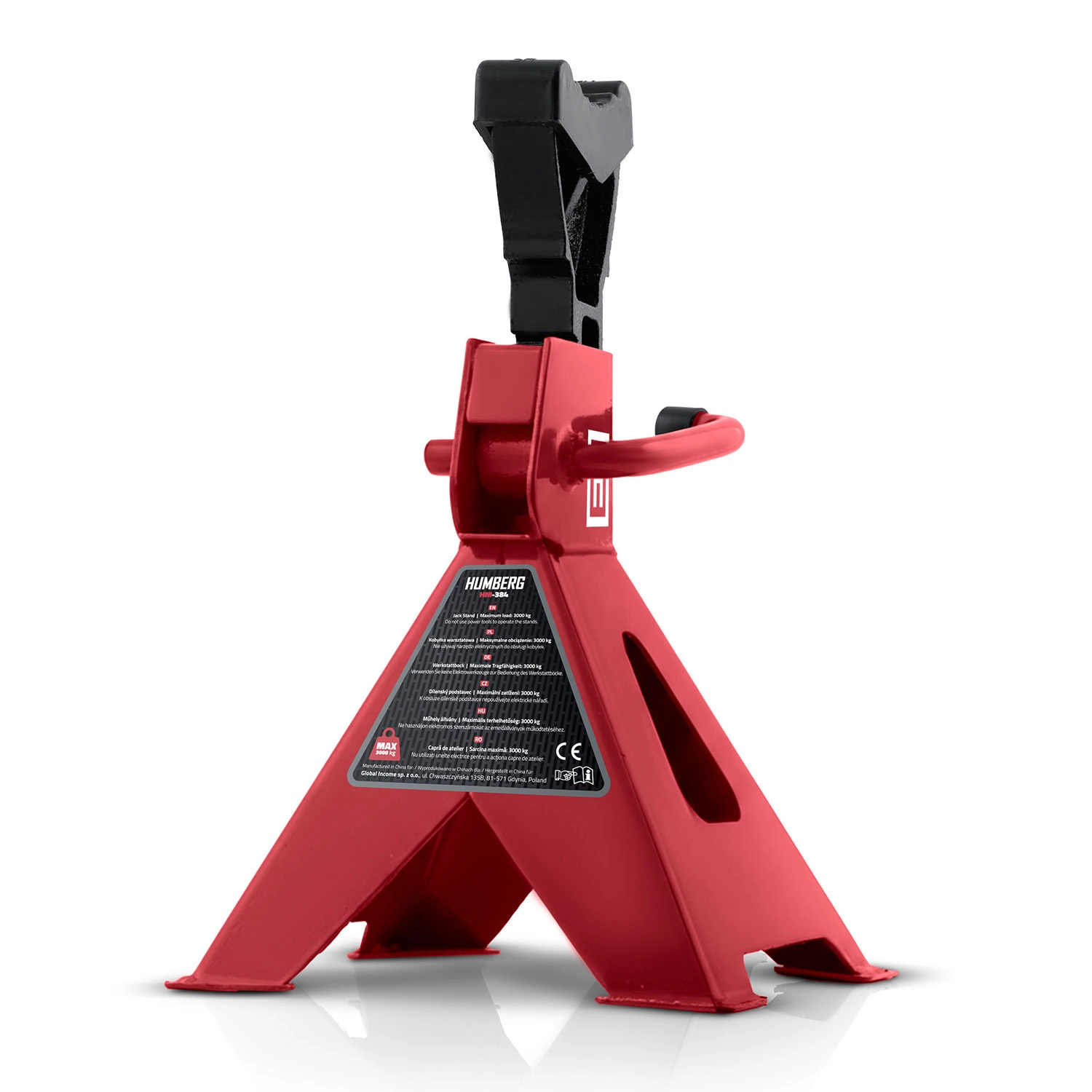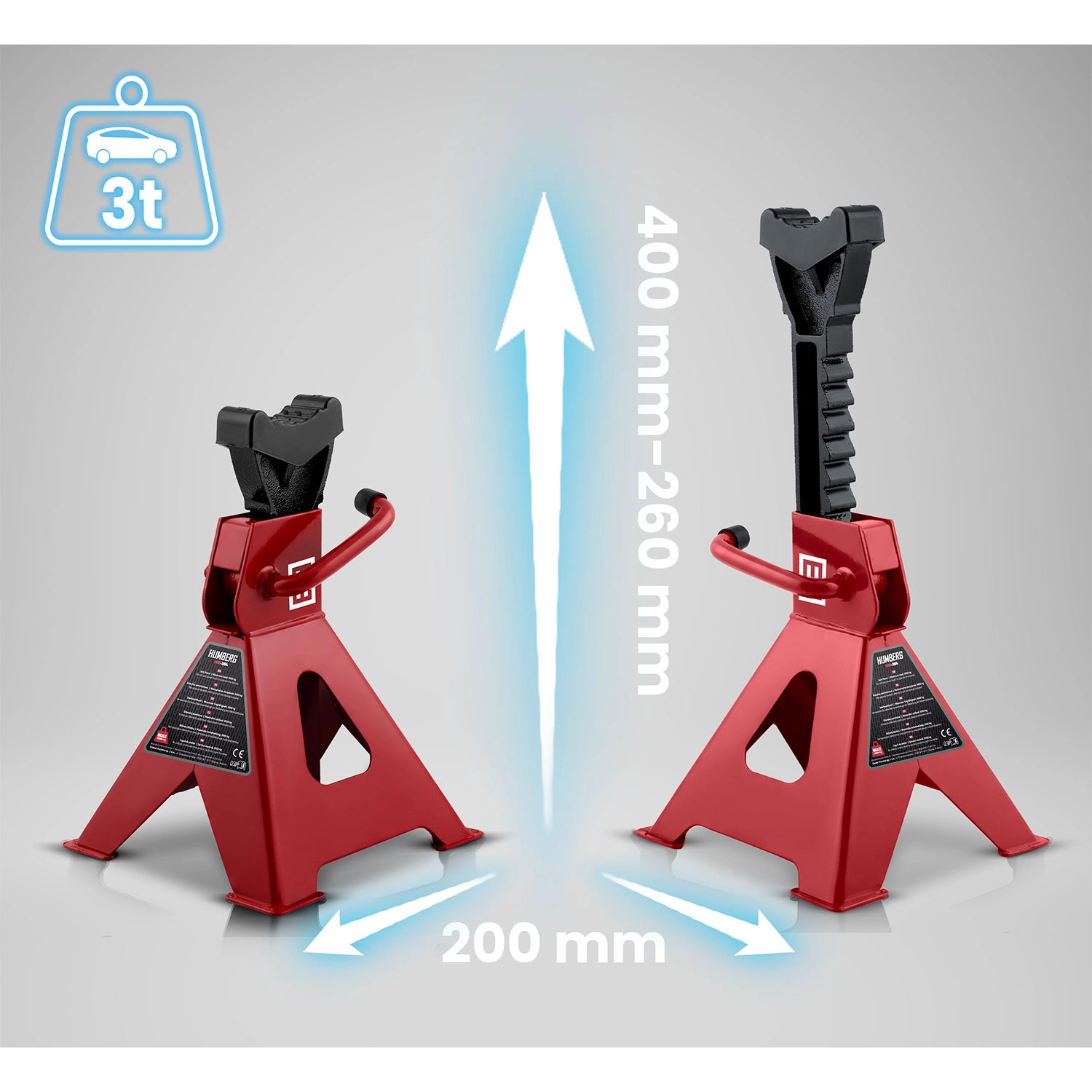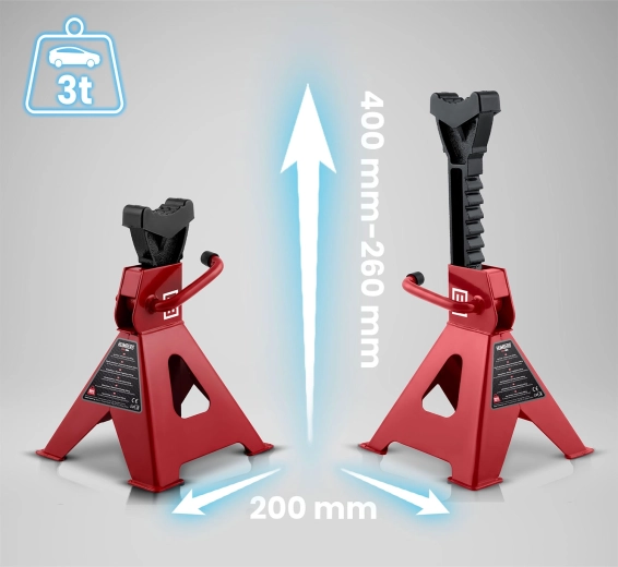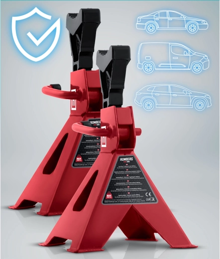 Grâce à la large base triangulaire et à la construction en acier robuste, les chandelles offrent une excellente stabilité sur surface plane. Elles conviennent à la plupart des voitures particulières et aux véhicules utilitaires légers jusqu’à 3 t.