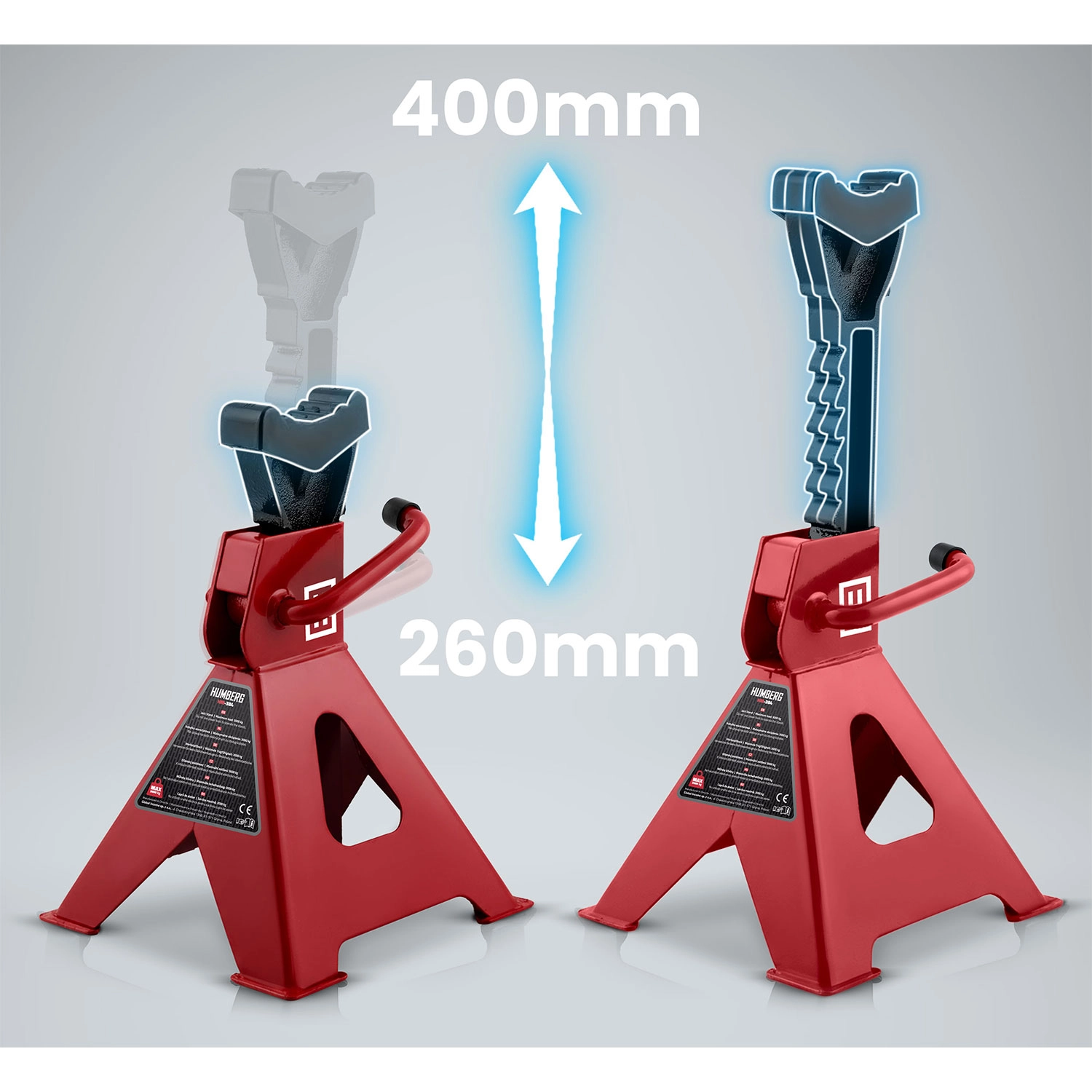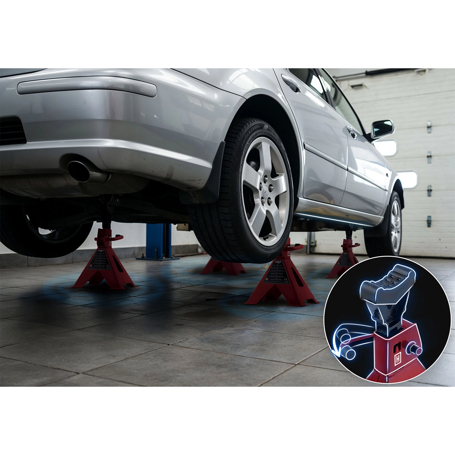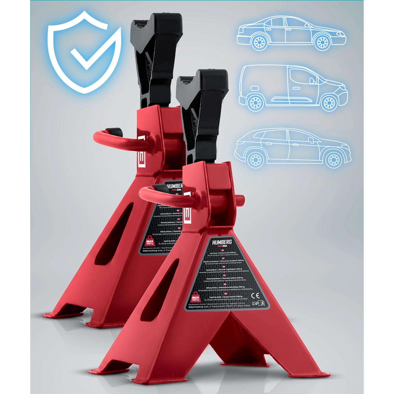 Grâce à la large base triangulaire et à la construction en acier robuste, les chandelles offrent une excellente stabilité sur surface plane. Elles conviennent à la plupart des voitures particulières et aux véhicules utilitaires légers jusqu’à 3 t.