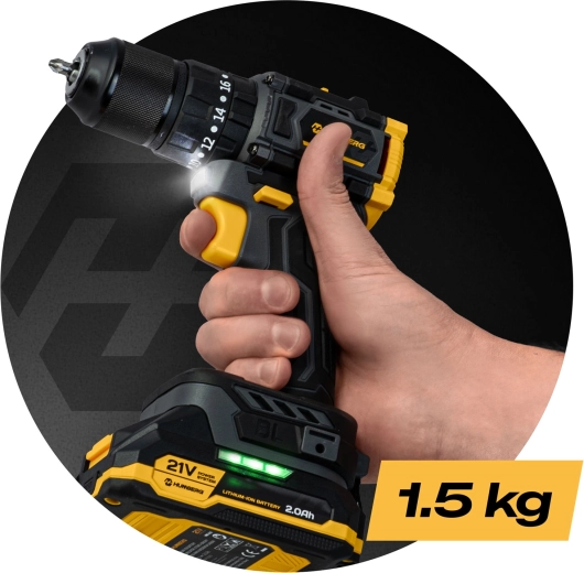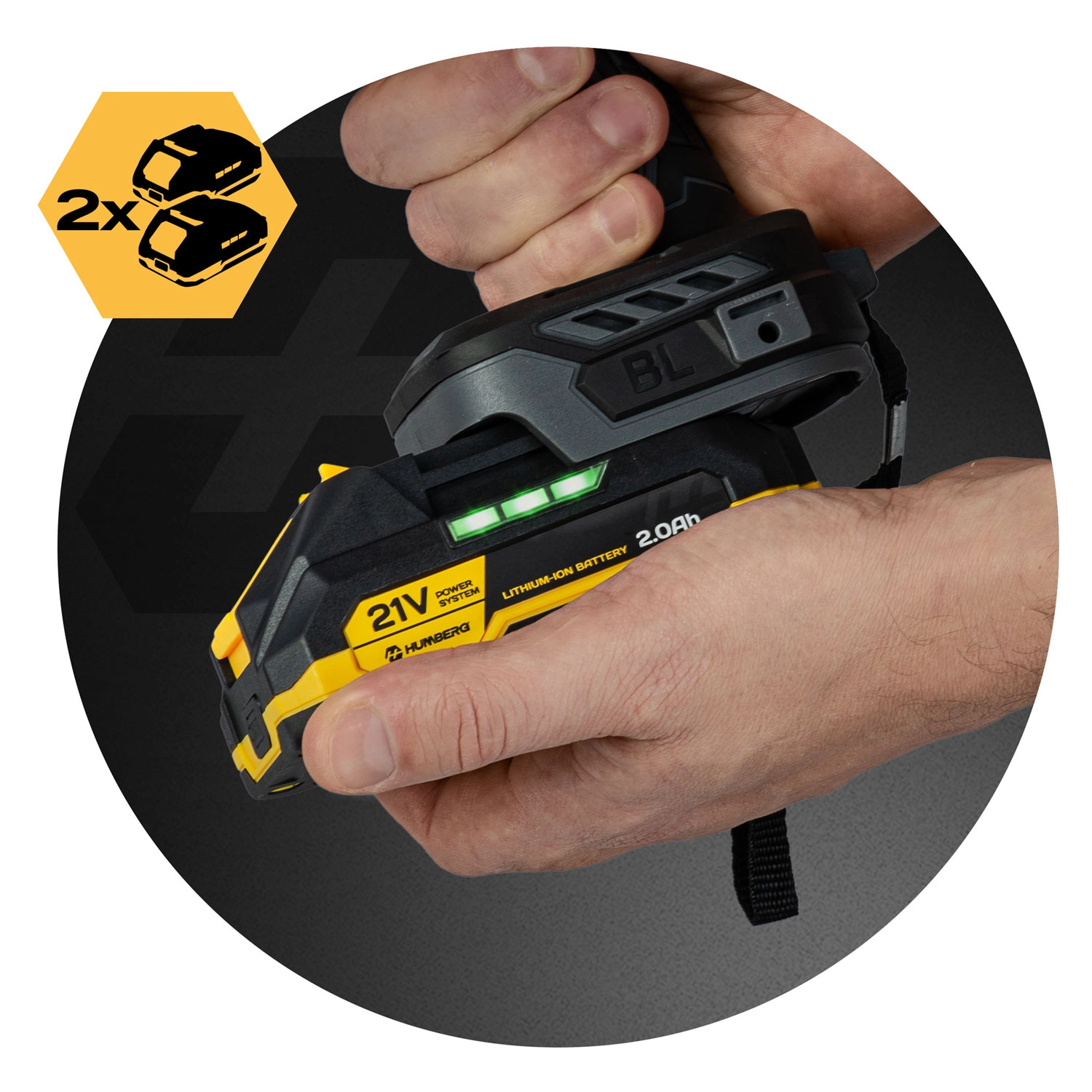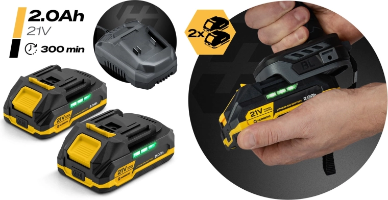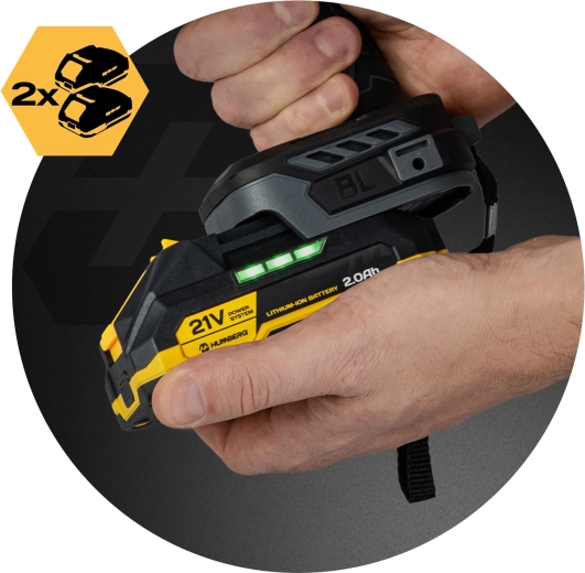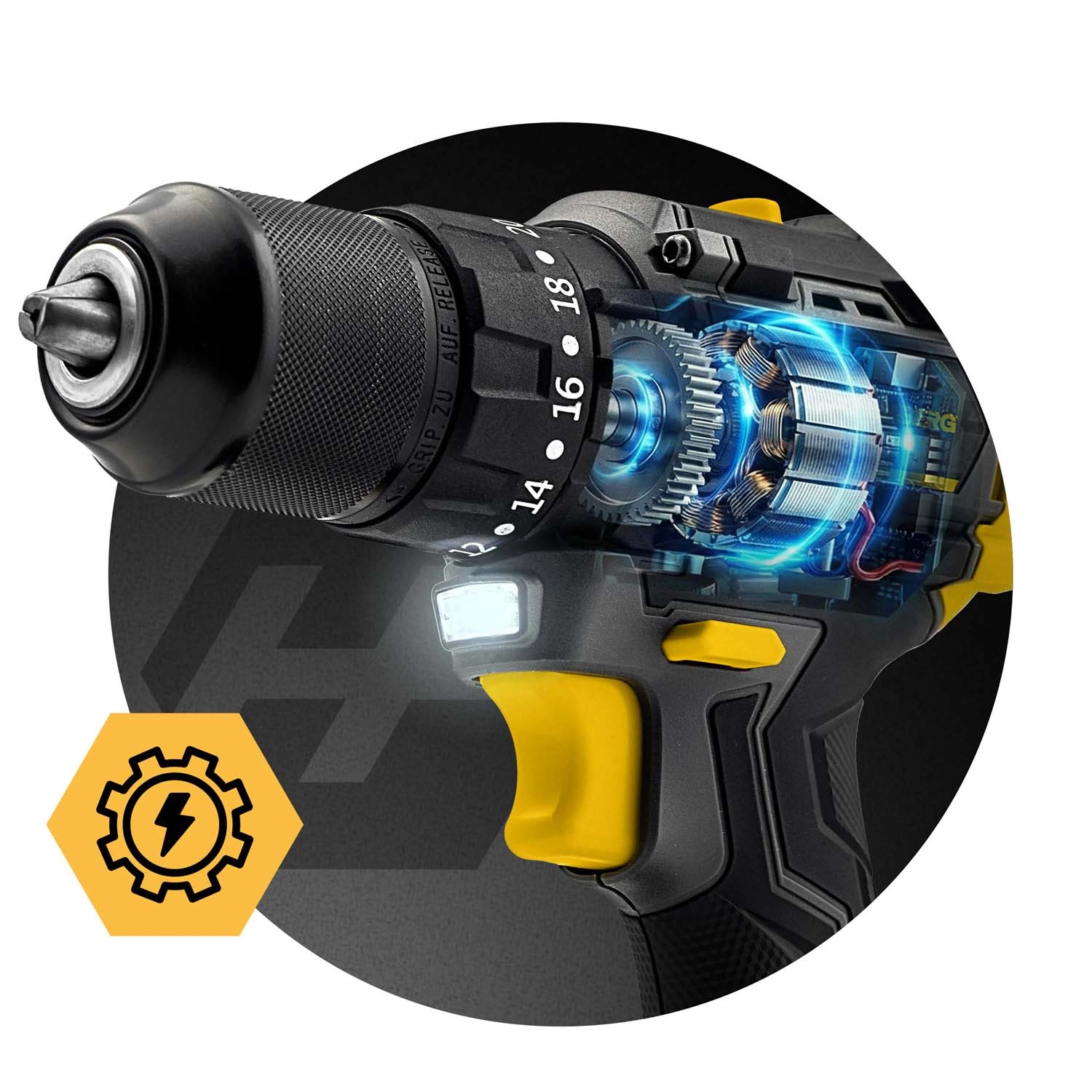 Cette perceuse à percussion sans fil maîtrise le vissage précis, le perçage rapide et le perçage à percussion dans des matériaux plus durs. Le moteur sans balais apporte un meilleur rendement, une durée de vie prolongée et un fonctionnement fluide sans à-coups. Grâce aux deux batteries 21 V 2 Ah, vous pouvez travailler sans interruption – while l’une se recharge, vous utilisez l’autre.
