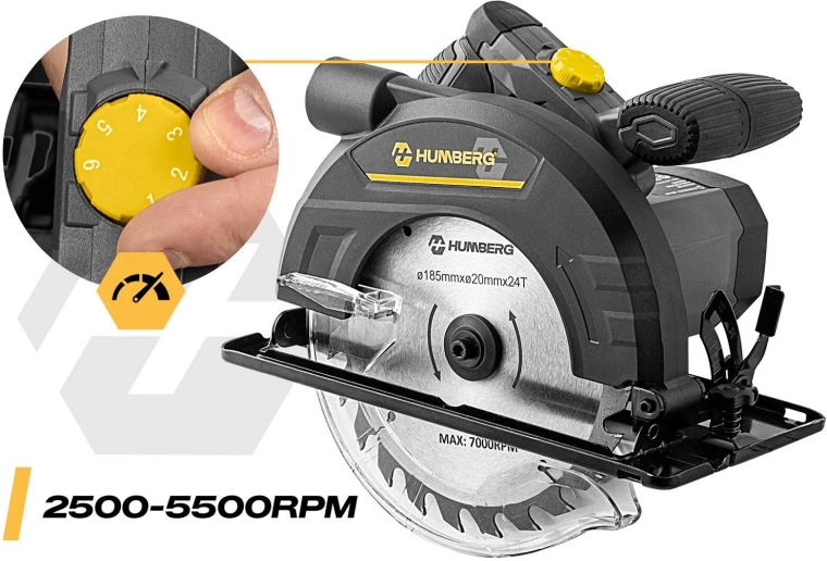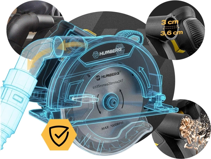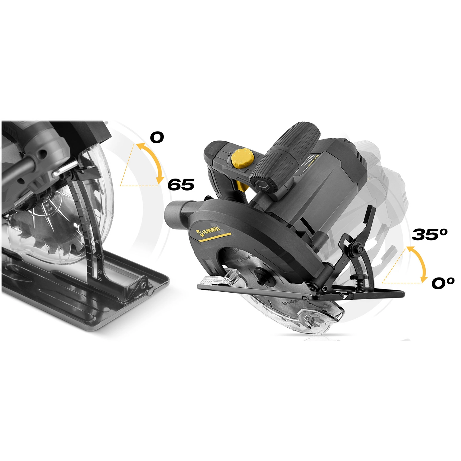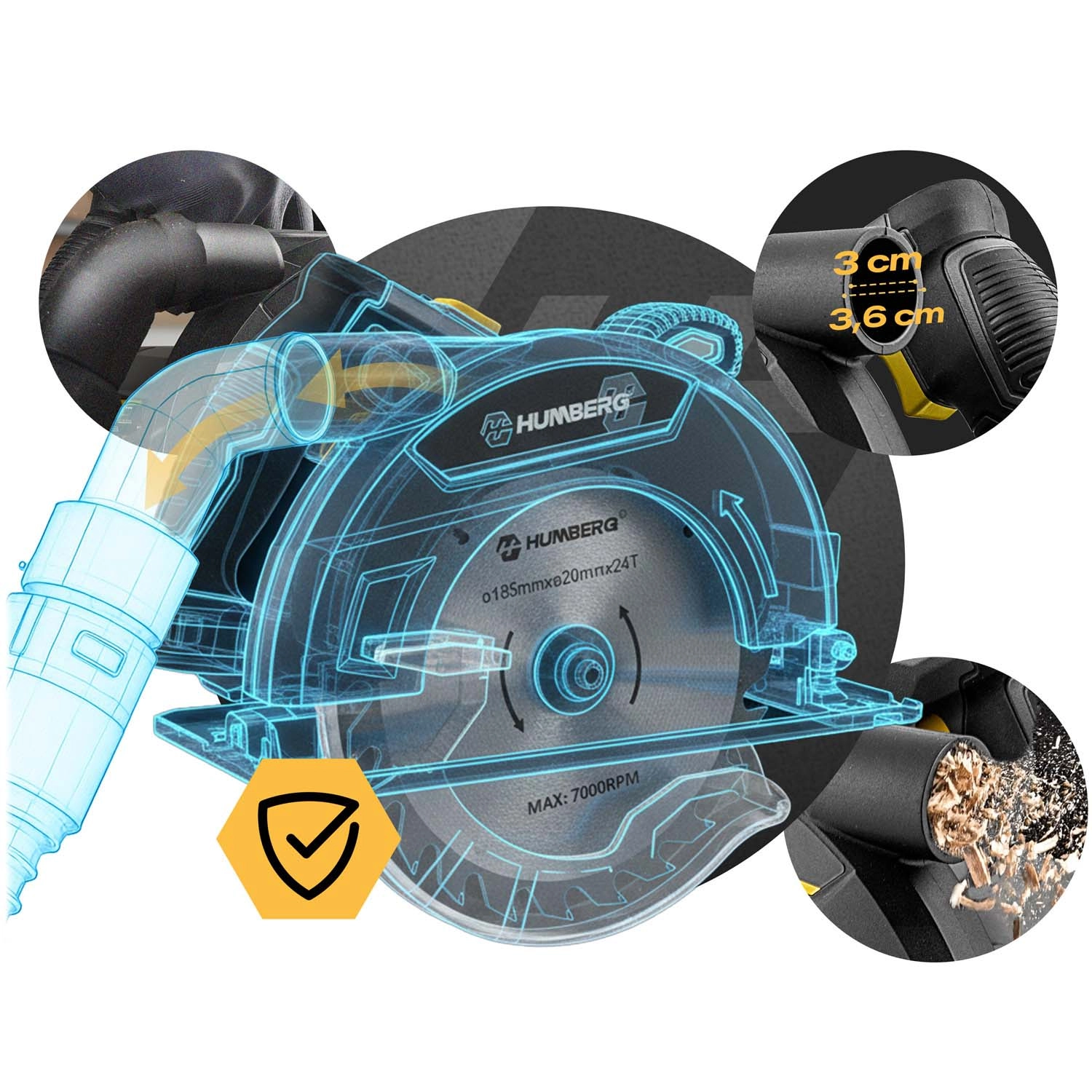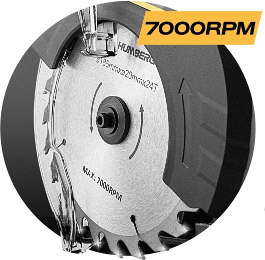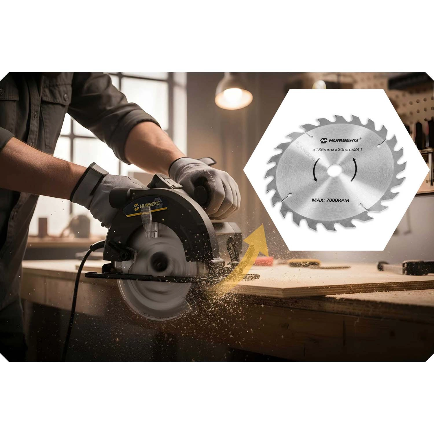 Efficacité de coupe maximale dans sa catégorie grâce à la combinaison d’un moteur puissant de 1200 W et d’une régulation de vitesse en continu. À l’aide du sélecteur 1–6, adaptez facilement la vitesse au matériau : vitesses plus basses pour les bois sensibles, plus élevées pour des coupes rapides et nettes. Le disque 185 mm à 24 dents avec alésage de 20 mm garantit une coupe lisse et précise sans éclats.