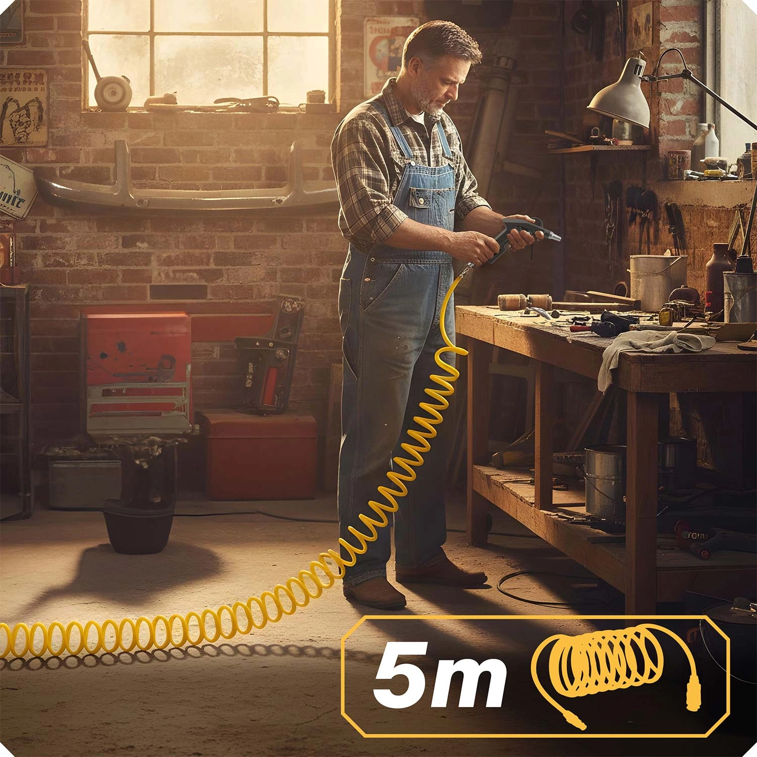 Pour les médiums plus exigeants, le pistolet d’application/de conservation avec réservoir 1 l est prévu – parfait pour les traitements de châssis, les lubrifiants et les mélanges anticorrosion. Le tuyau spiralé 5 m est léger, flexible et résistant au pliage, garantissant une portée confortable et une manœuvrabilité aisée autour de l’espace de travail.