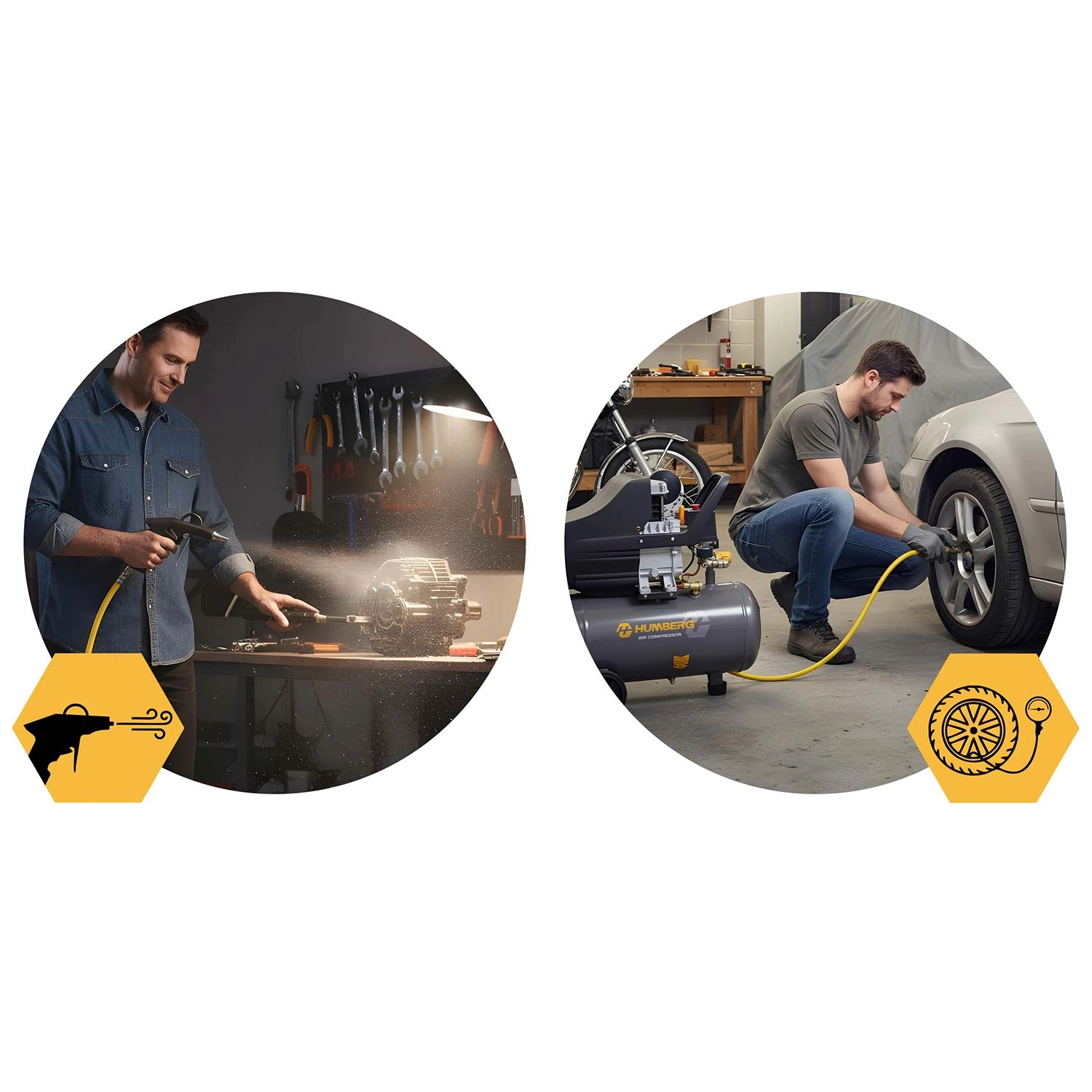 - Gonflage des pneus, soufflage, nettoyage, travaux à l’atelier et au garage