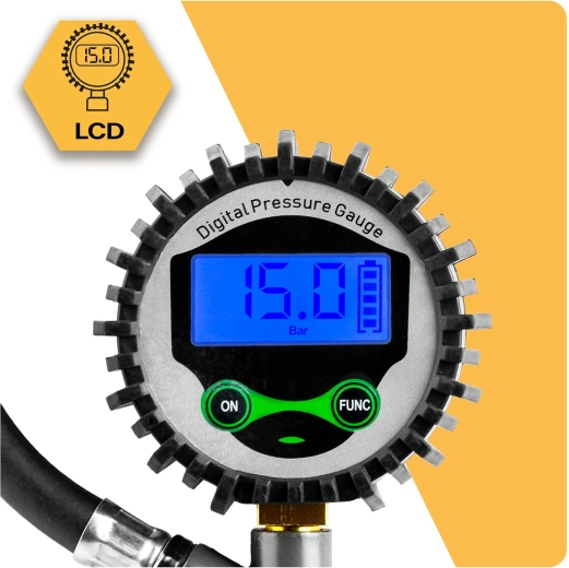 • Mesure et gonflage précis : plage 0–15 bar, réponse rapide et valeurs lisibles.