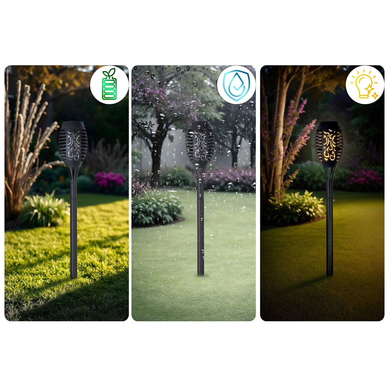 Créez une ambiance féerique dans votre jardin avec un lot de deux lampes torches solaires. Grâce à leur design rustique et à leur effet de flamme chaude, elles sont idéales pour éclairer les allées et les massifs. Le panneau solaire amorphe assure la recharge même par faible luminosité, tandis que l’allumage automatique la nuit et l’étanchéité IPX4 offrent une utilisation sans souci.