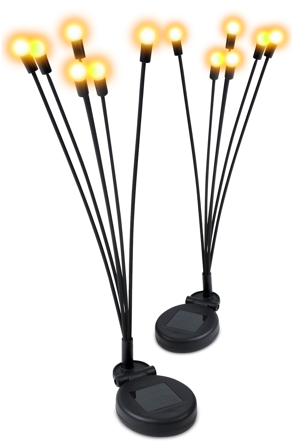 Créez une ambiance du soir féerique. Ces lampes solaires de jardin avec effet lucioles, en lot de 2 pièces, offrent une lumière décorative blanc chaud grâce à 6 perles lumineuses sur des tiges flexibles, un allumage automatique via un capteur crépusculaire et un fonctionnement sans fil avec un panneau solaire amorphe. Indice IPX4, batterie 150 mAh Ni‑MH et interrupteur ON/OFF pour un usage fiable et sans souci.