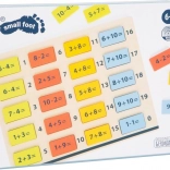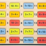Les enfants s’exercent facilement aux bases de l’arithmétique grâce à une table clairement organisée et à des exercices lisibles sur des pièces en bois.