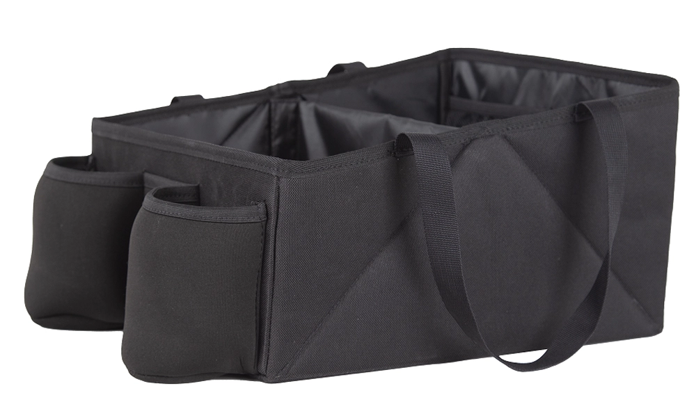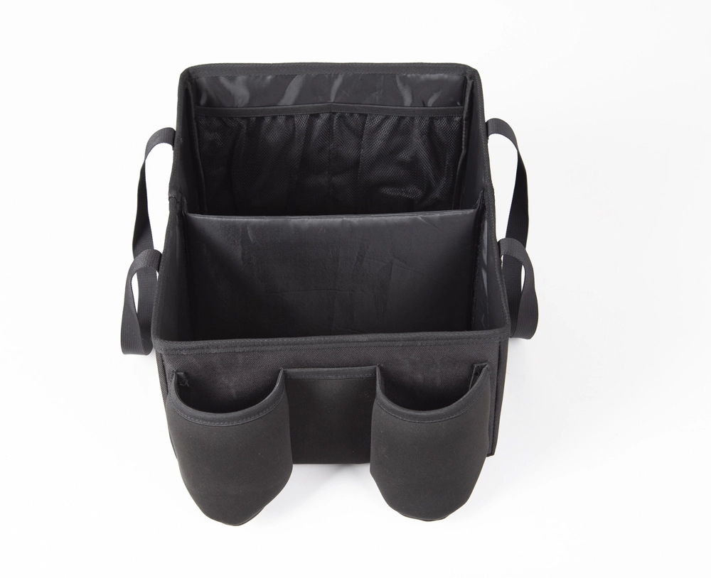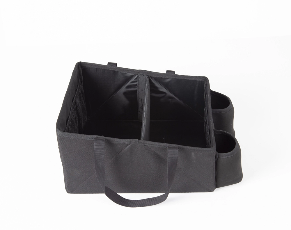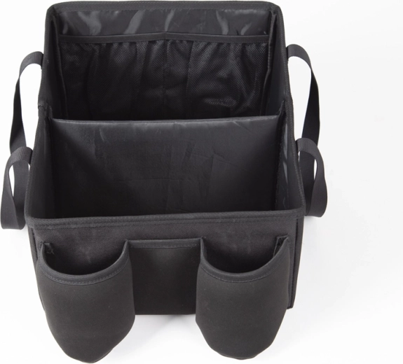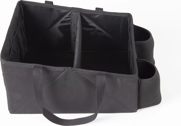 La boîte offre un grand espace intérieur divisé en 2 compartiments, complété par 2 poches en maille pour les accessoires. À l’avant, vous trouverez 2 porte-bouteilles ou thermos, pour garder les boissons toujours à portée de main. La structure est pliante – en une seconde, vous la pliez à plat, la transportez grâce à ses poignées robustes et la dépliez à nouveau.