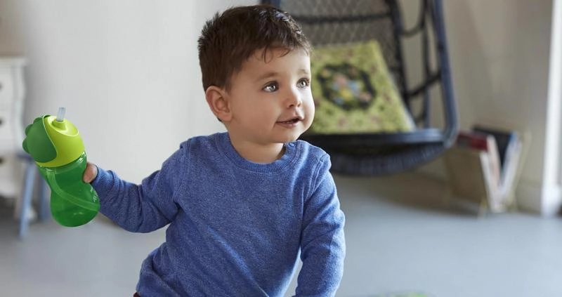 La paille flexible permet aux enfants de boire confortablement sous n’importe quel angle et d’atteindre le fond du gobelet sans interrompre le jeu.
