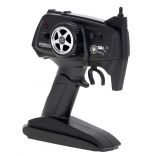 Un émetteur 2,4 GHz est inclus pour un contrôle stable et sans interférences. Le modèle est alimenté par un accumulateur, la radiocommande nécessite 4× AA 1,5 V. Les dimensions 48 × 27 × 25 cm offrent un excellent compromis entre agilité et franchissement.