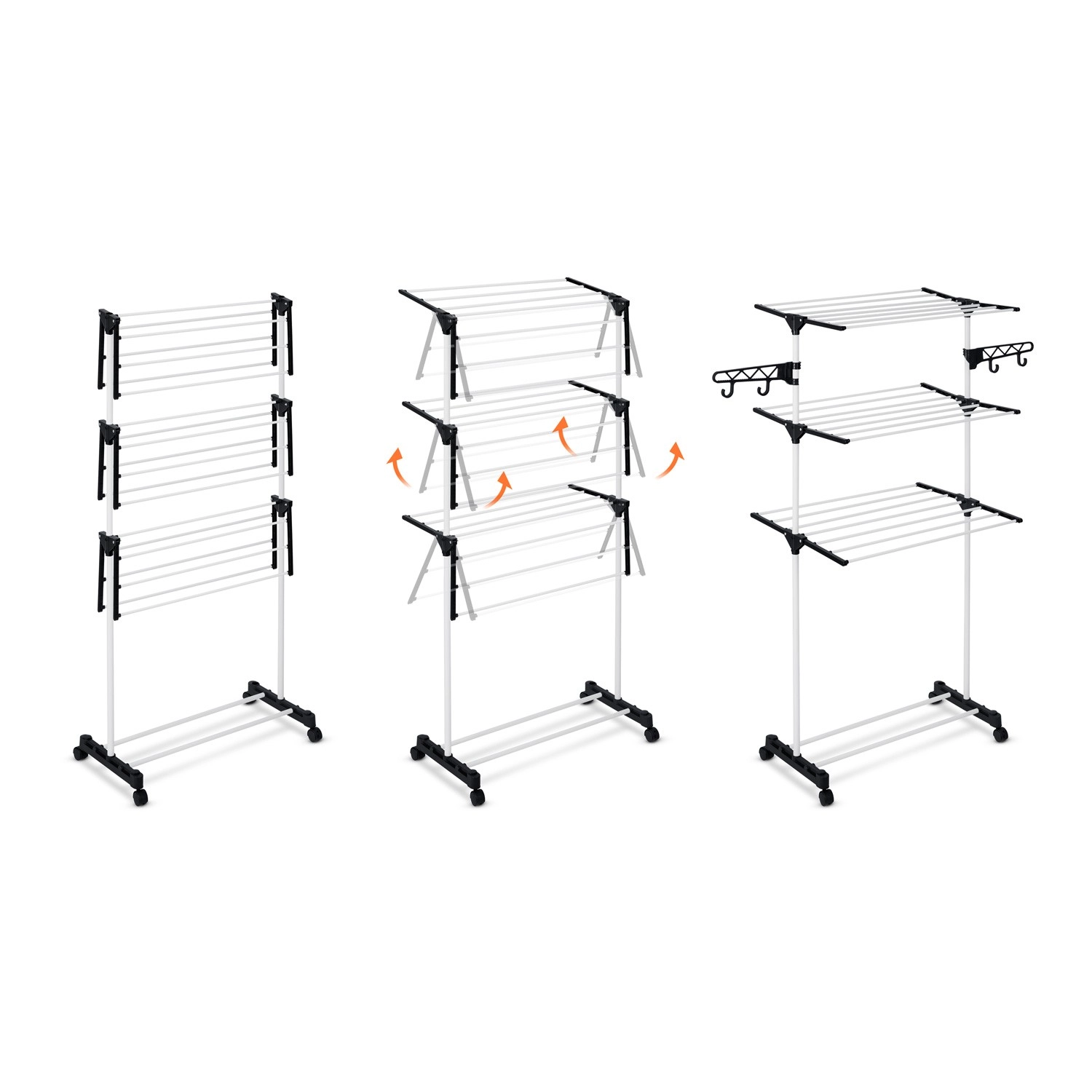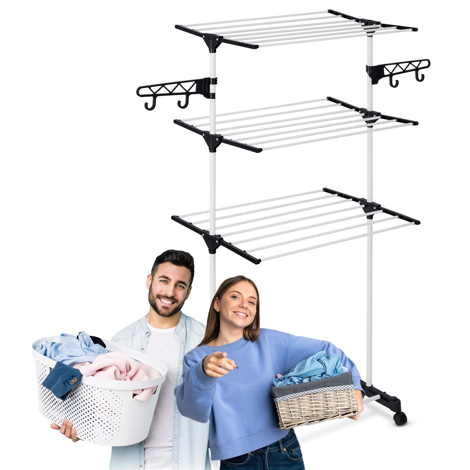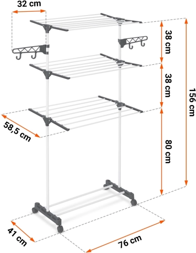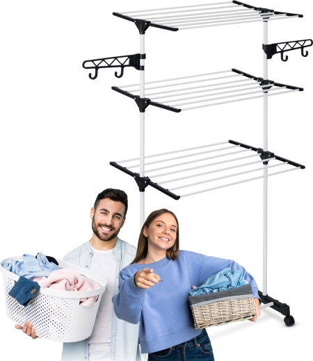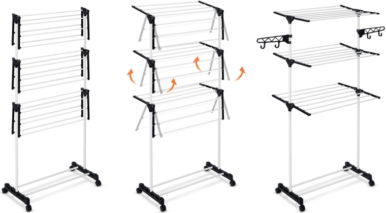 Jusqu’à 15 mètres de surface de séchage sur plusieurs niveaux, adaptés même aux petits espaces. Idéal pour le balcon ou un couloir étroit.