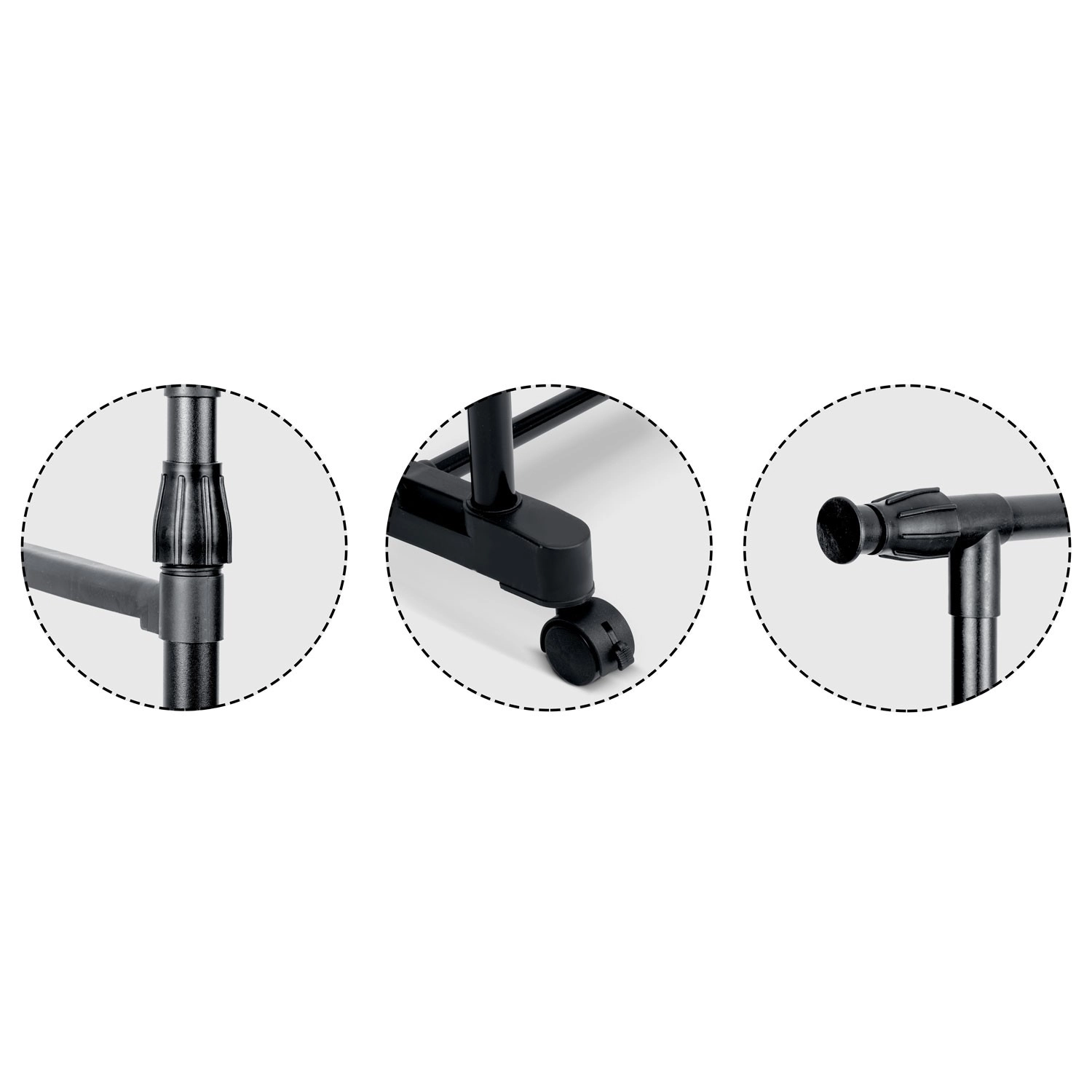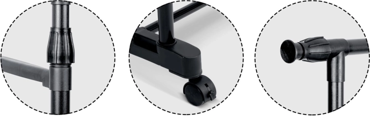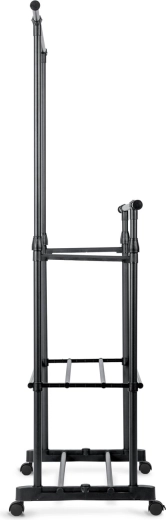 Quatre roulettes pivotantes assurent un mouvement fluide dans la pièce. Le système de blocage intégré maintient le porte-vêtements en place en toute sécurité lors de l’accrochage des vêtements.
