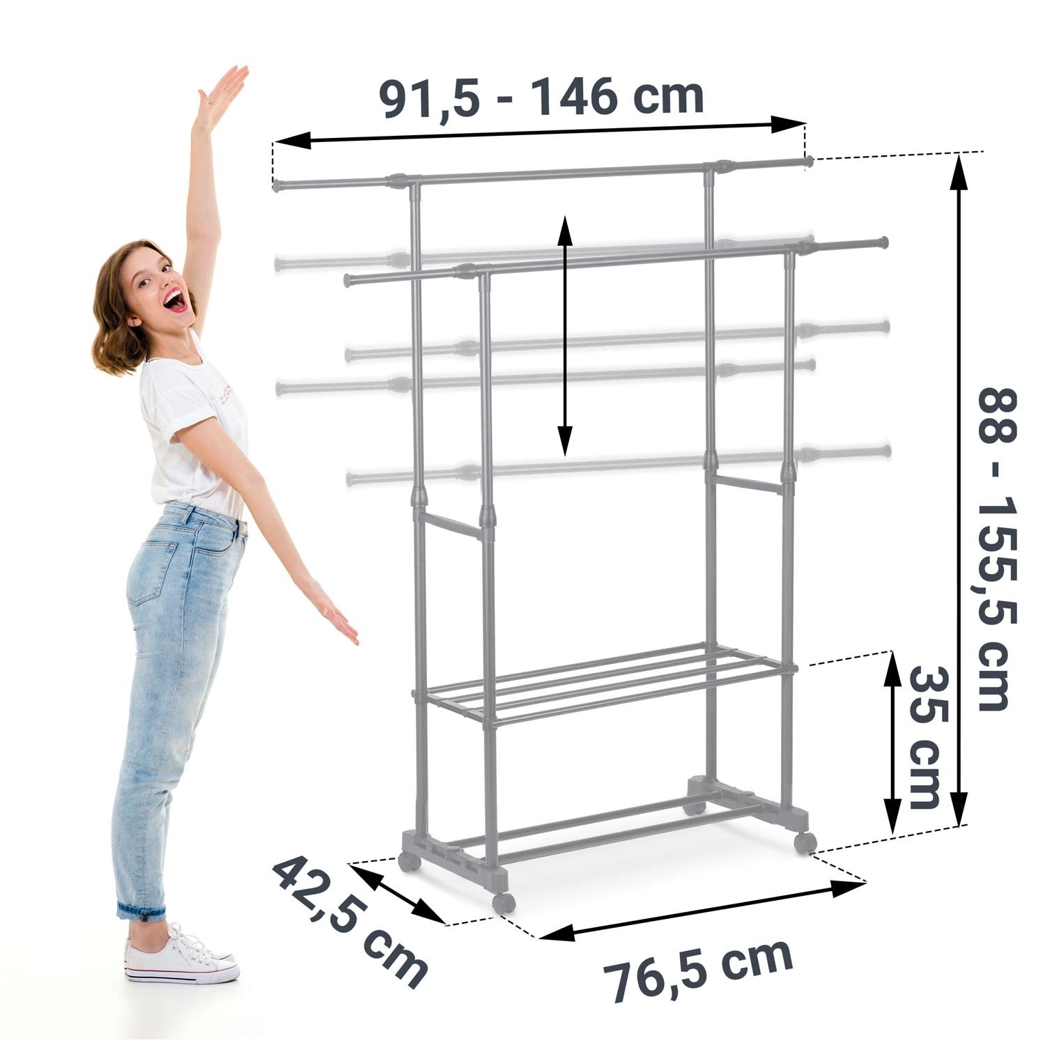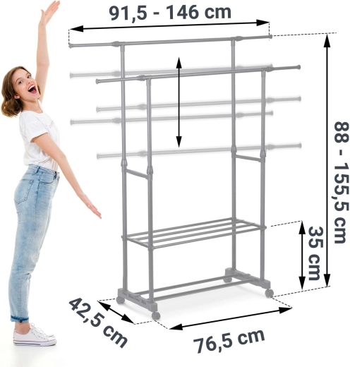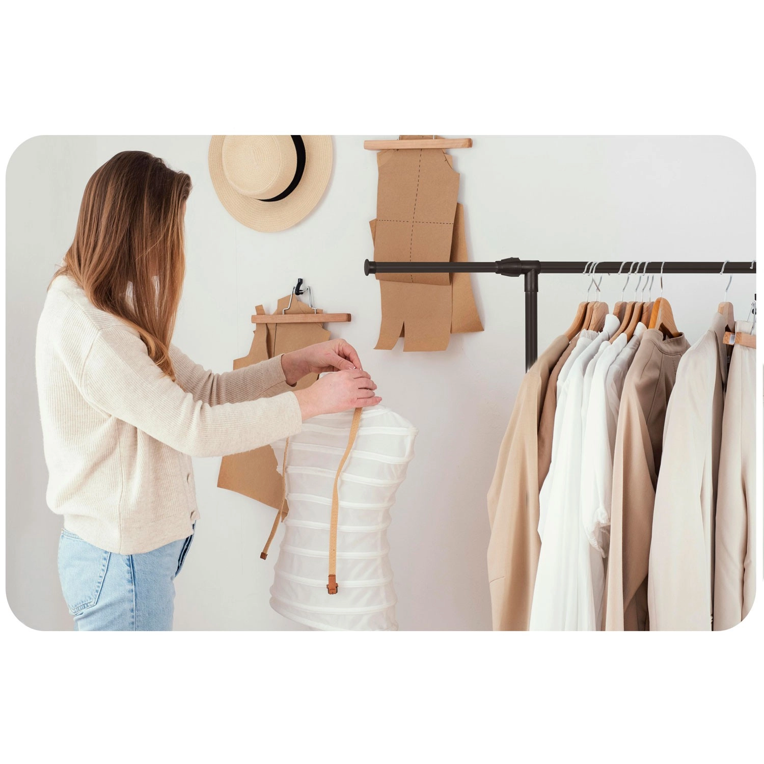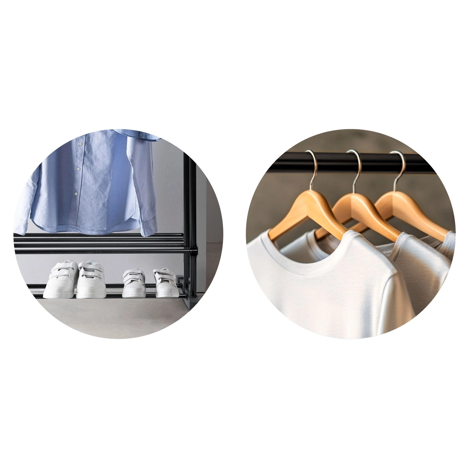 Adaptez le porte-vêtements à votre espace et au type de vêtements. Réglez facilement la hauteur pour les longs manteaux et la largeur pour une capacité accrue sans perdre en stabilité.