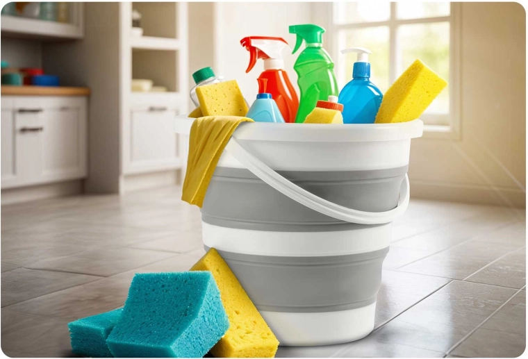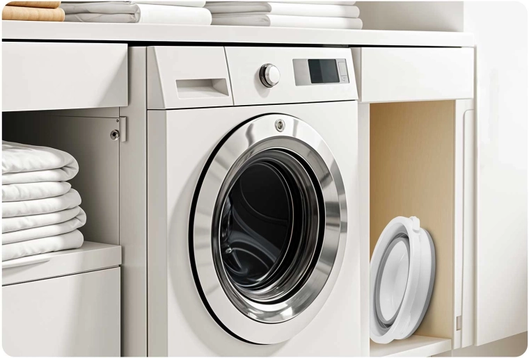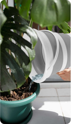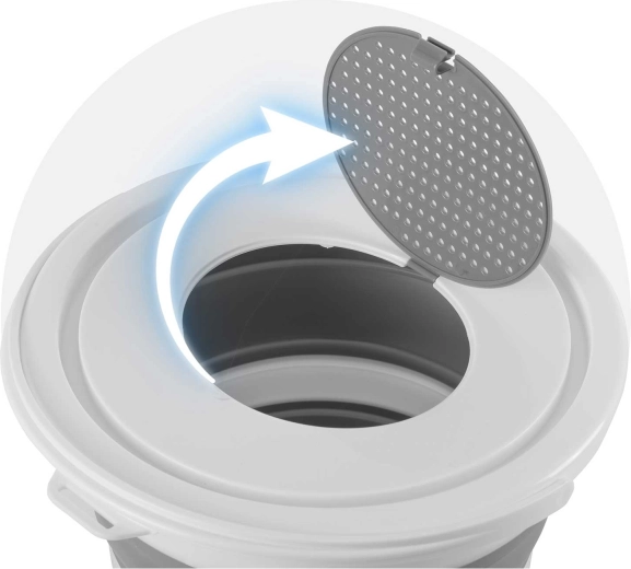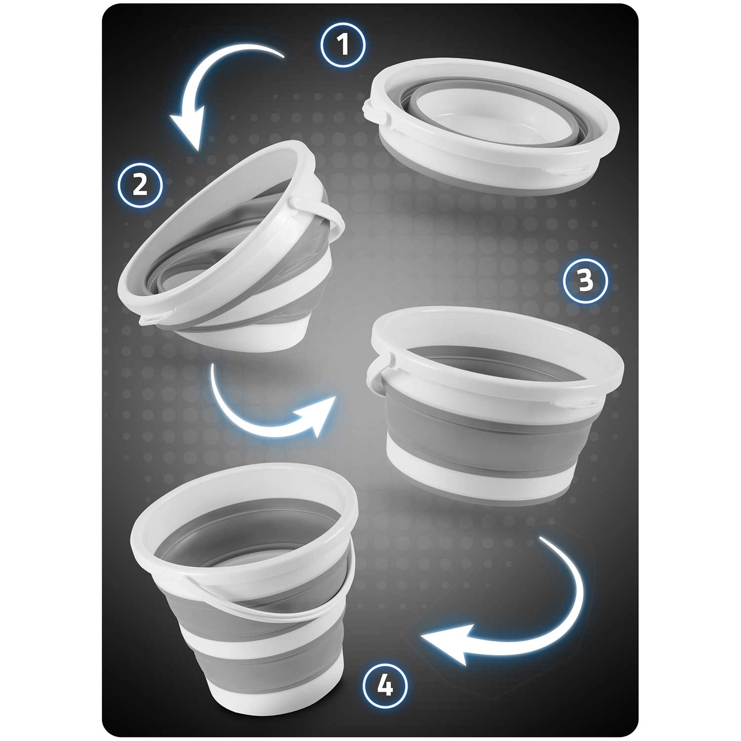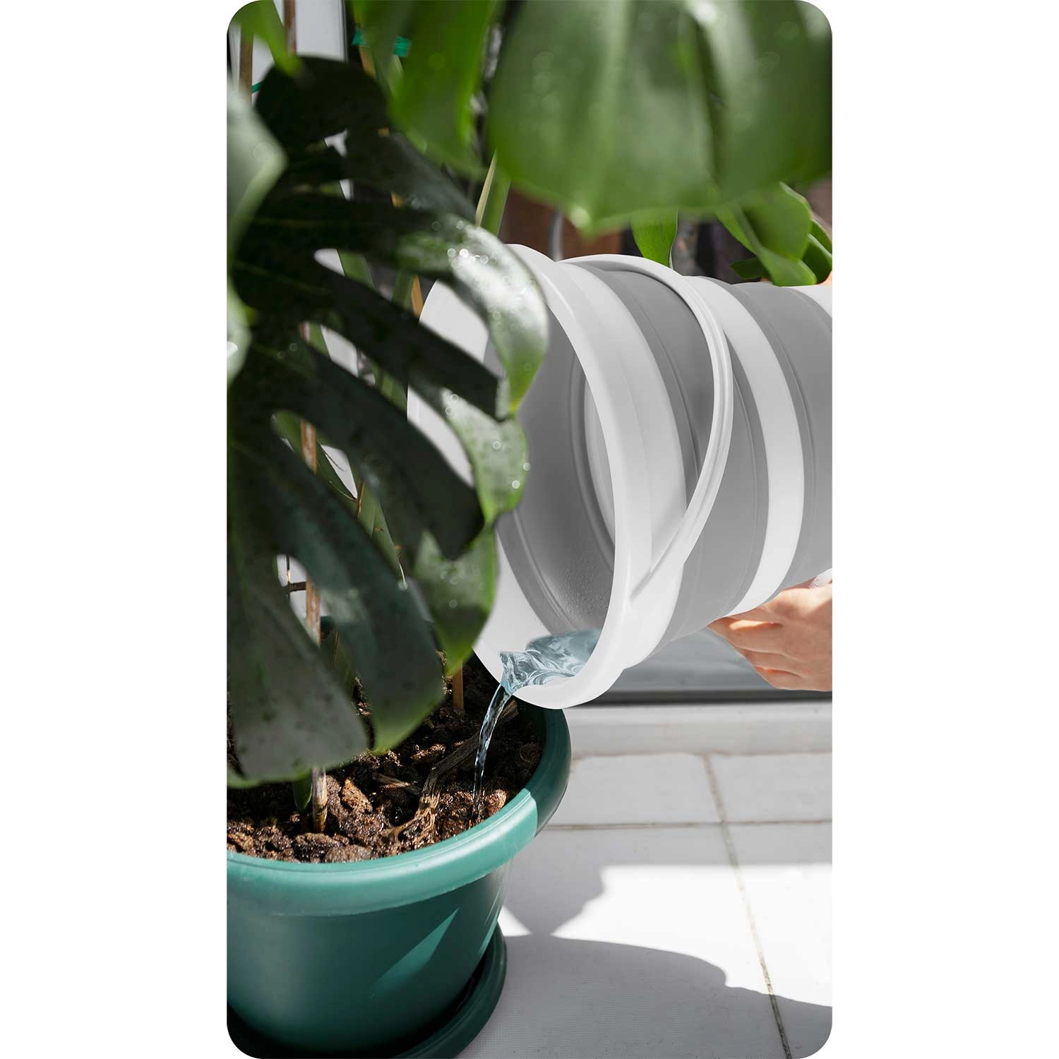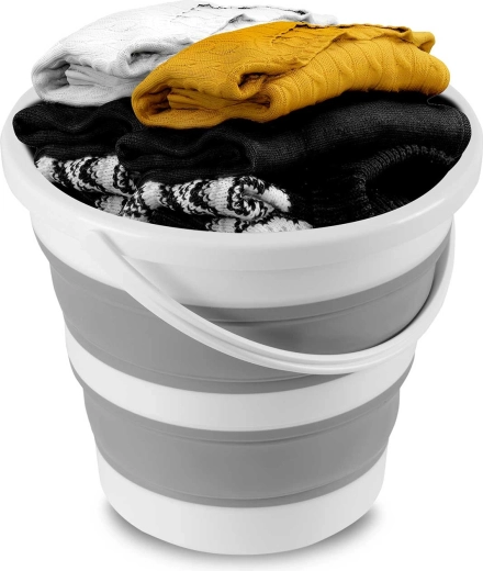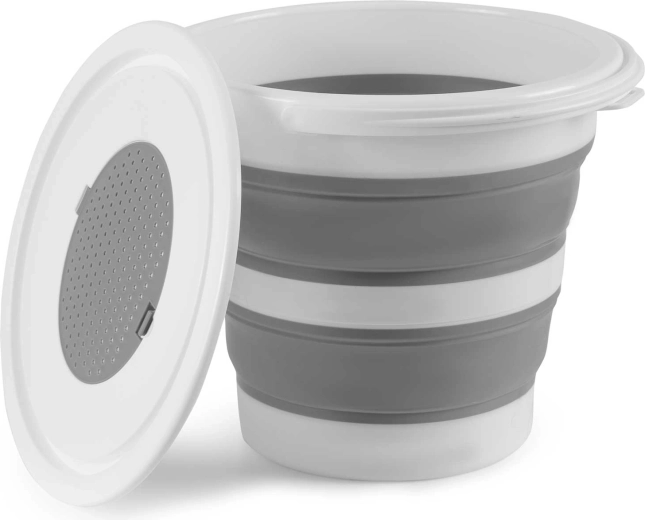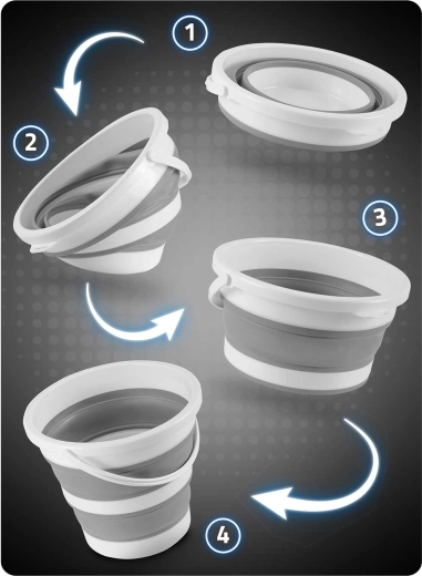 Les parois en silicone accordéon permettent d’aplatir complètement le seau pour le ranger dans un placard ou un coffre. Idéal pour les petits appartements, les caravanes et les voyages.