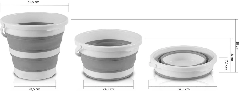 Le seau pliable Massido est un assistant universel pour la maison, la salle de bain, la lessive et le camping. Sa fabrication résistante en silicone de qualité et plastique rigide assure une longue durée de vie, et la poignée robuste facilite le transport. Après utilisation, repliez-le en quelques instants jusqu’à une hauteur d’environ 7,5 cm, afin qu’il tienne dans un placard, un cellier ou une voiture.