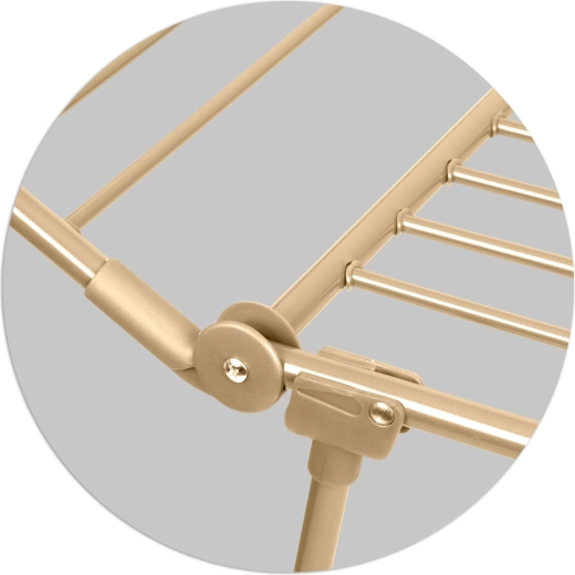 Massido Debora Gold allie fonctionnalité et élégance. Sa structure métallique au revêtement doré métallisé est durable, stable et facile à entretenir. Les barreaux épais largement espacés réduisent le froissage des textiles et favorisent une meilleure circulation de l’air pour un séchage uniforme sans repassage.