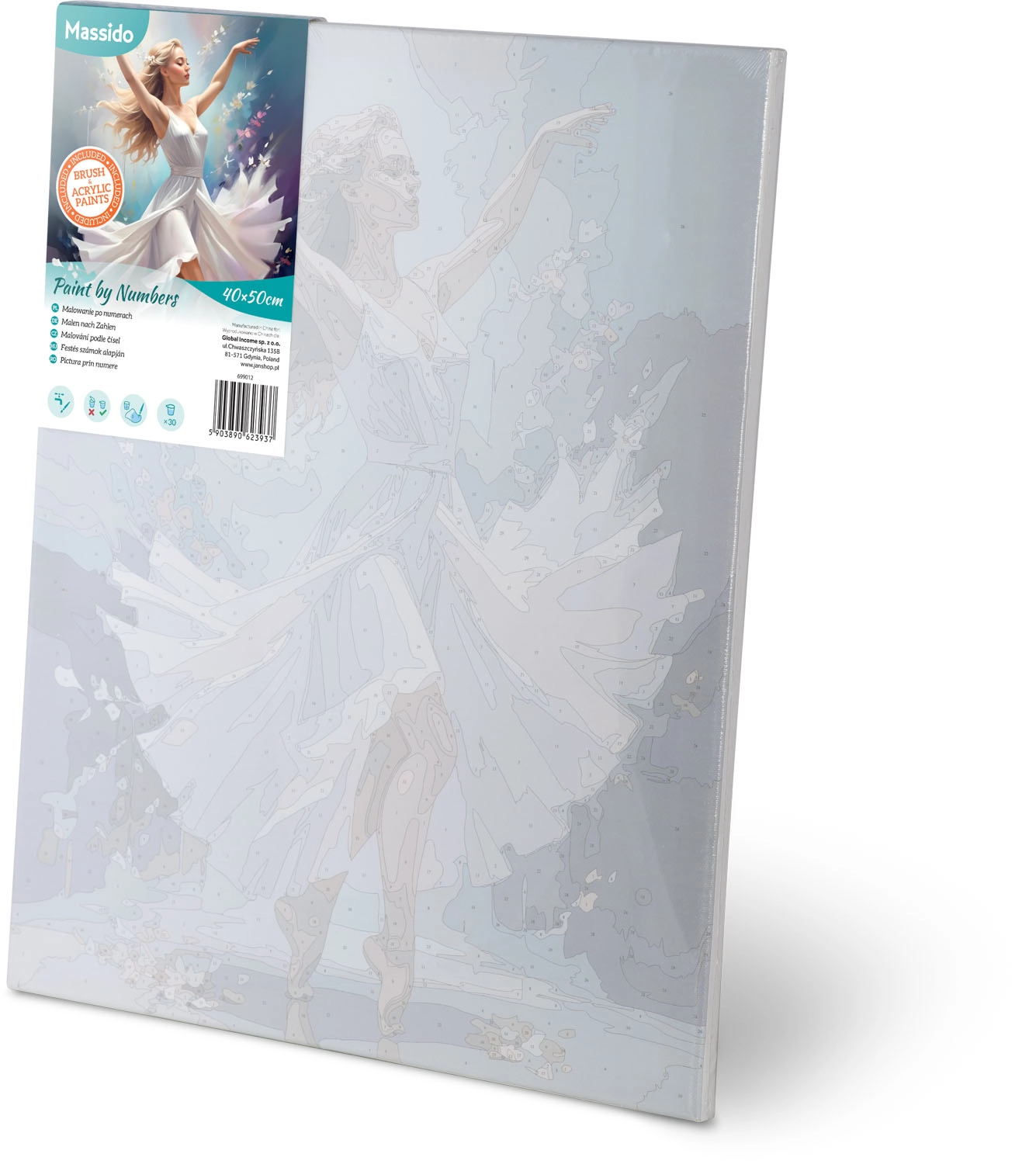 Transformez vos moments libres en expérience créative. Le set MASSIDO avec le motif de la Femme dansante offre tout ce dont vous avez besoin pour créer un tableau élégant : toile montée sur châssis avec zones numérotées, jusqu’à 30 peintures acryliques intenses et trois pinceaux précis. Grâce à la sous-couche colorée et au marquage clair, la peinture est intuitive et relaxante, idéale pour les enfants comme pour les adultes.