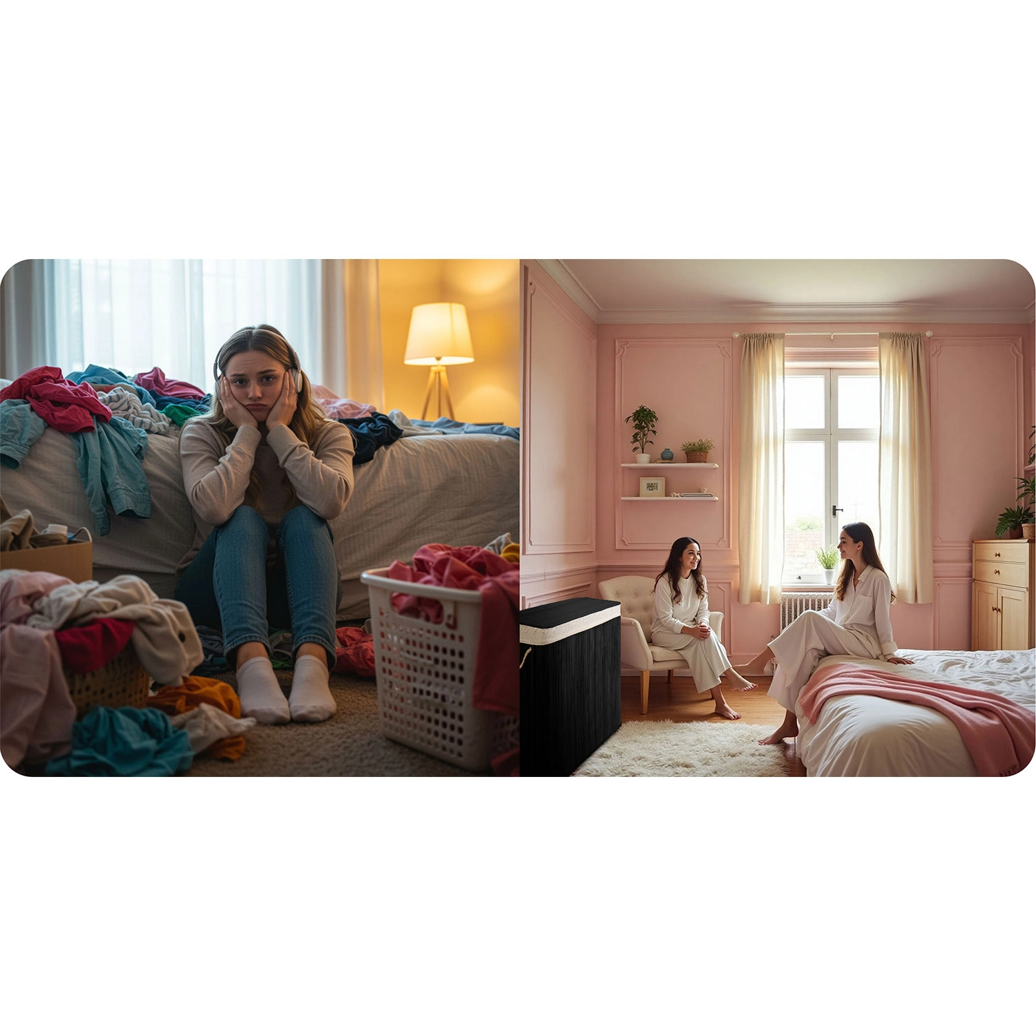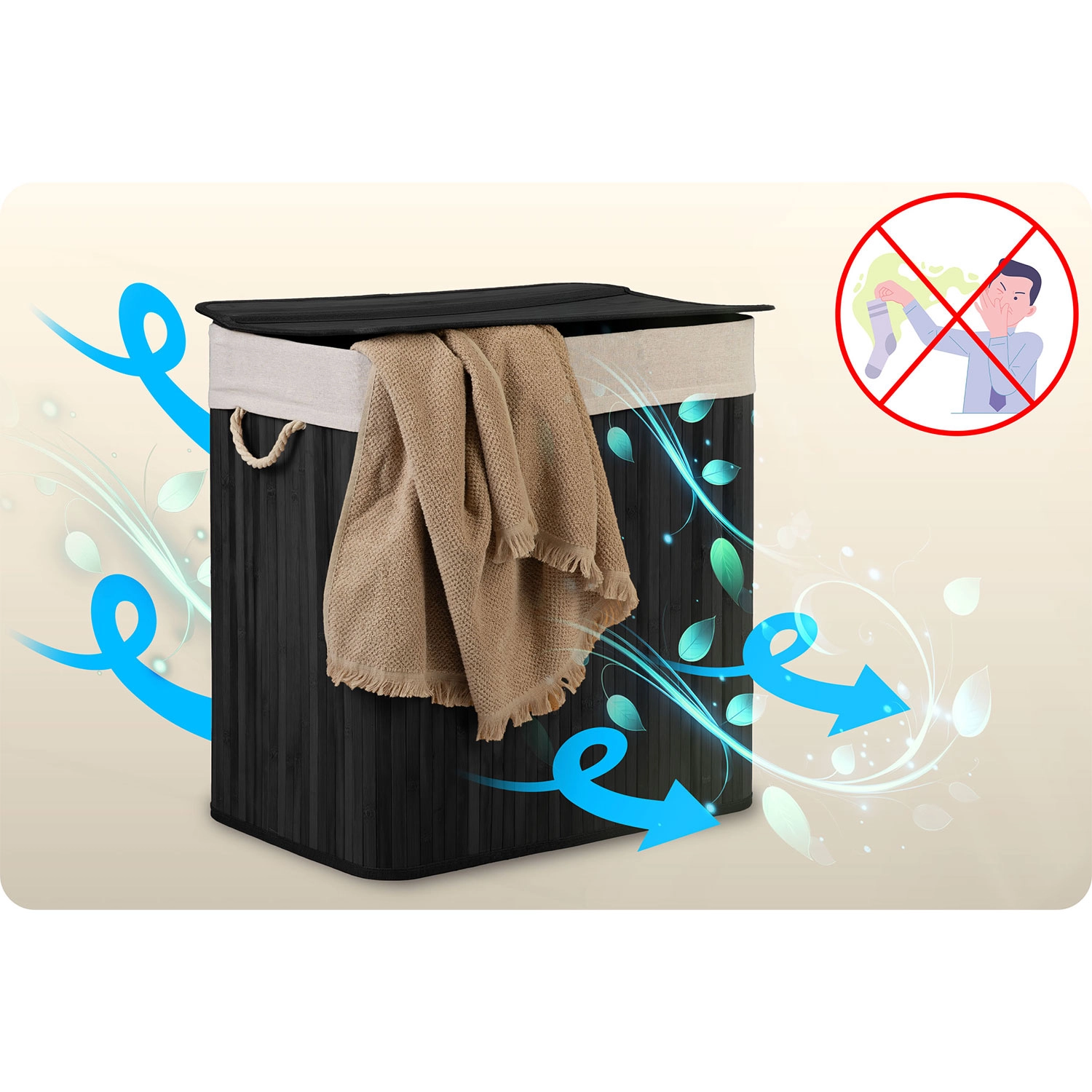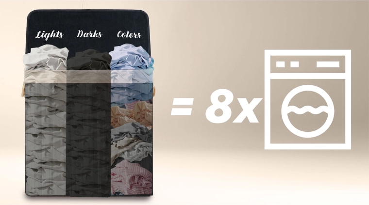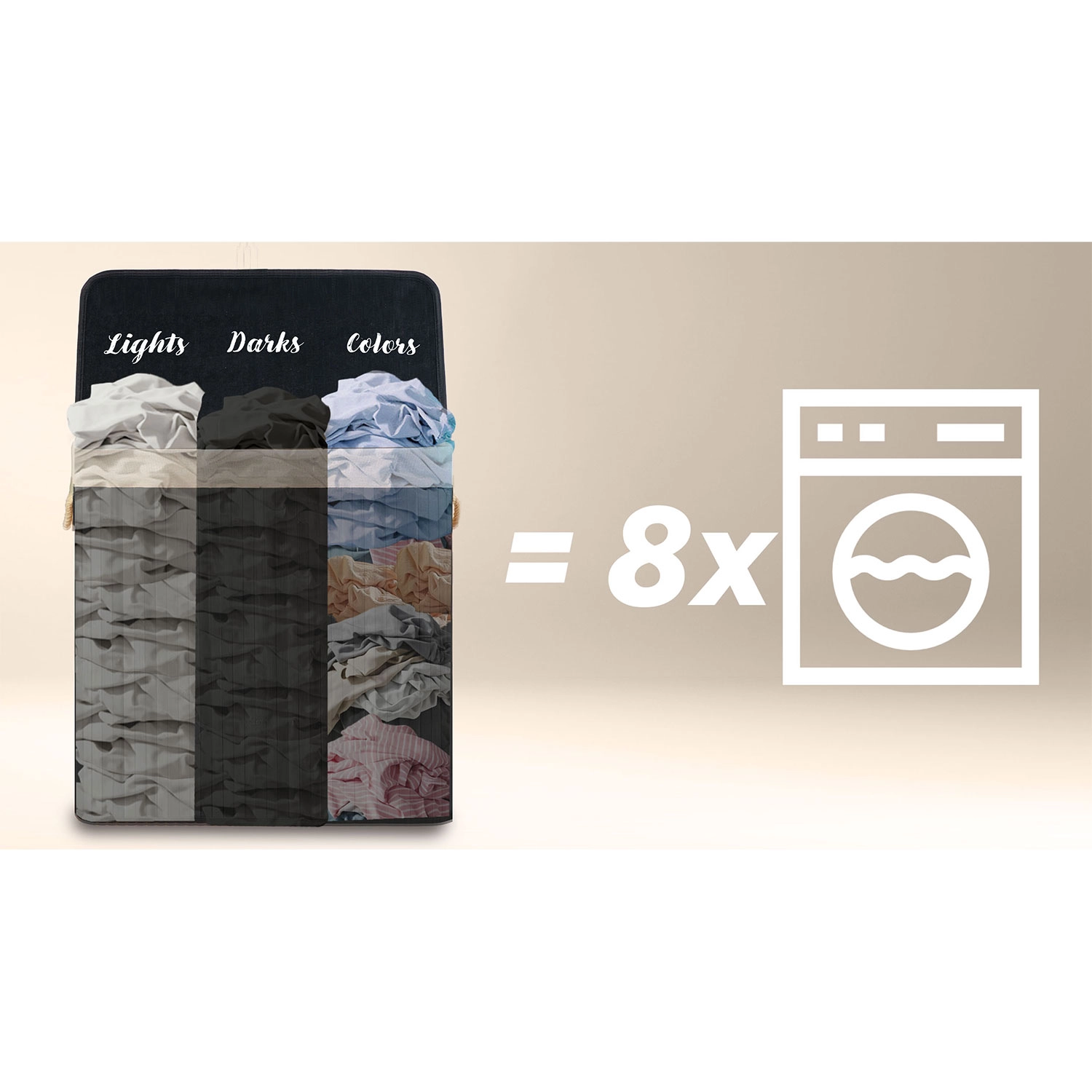 Découvrez une solution pratique pour le tri quotidien du linge. Le grand volume de 150 litres accueille le linge de plusieurs machines, tandis que les marquages clairs Lights / Darks / Colors vous évitent un long tri avant le lavage. Les matériaux naturels – bambou et coton – favorisent la circulation de l’air et limitent les odeurs.