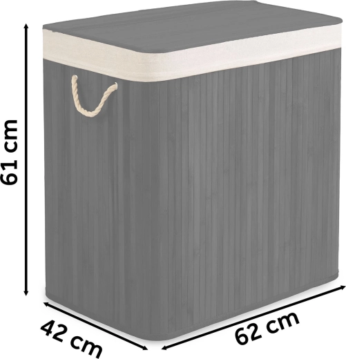 La structure en bambou durable avec couvercle et poignées en corde s’intègre parfaitement dans la salle de bain, la chambre ou le dressing.