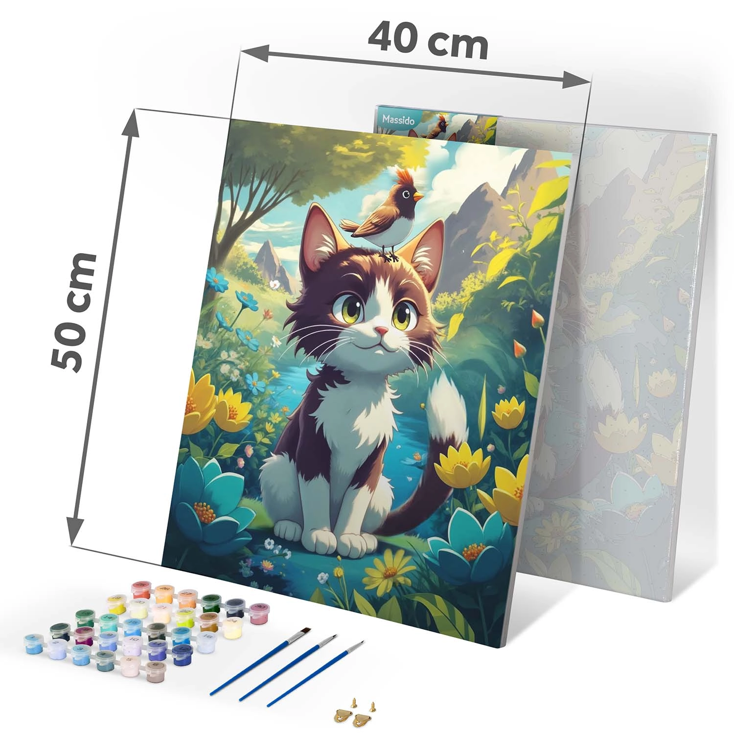 Découvrez la joie de créer avec le set de peinture par numéros 40×50 cm de MASSIDO. Toile préimprimée avec légère sous-couche et zones numérotées, 30 peintures acryliques opaques, 3 pinceaux précis et kit de suspension pour exposer facilement l’œuvre terminée. Idéal pour débutants et confirmés – suivez les numéros et réalisez une adorable image de chaton aux couleurs vives et intenses, sans transparence des lignes.