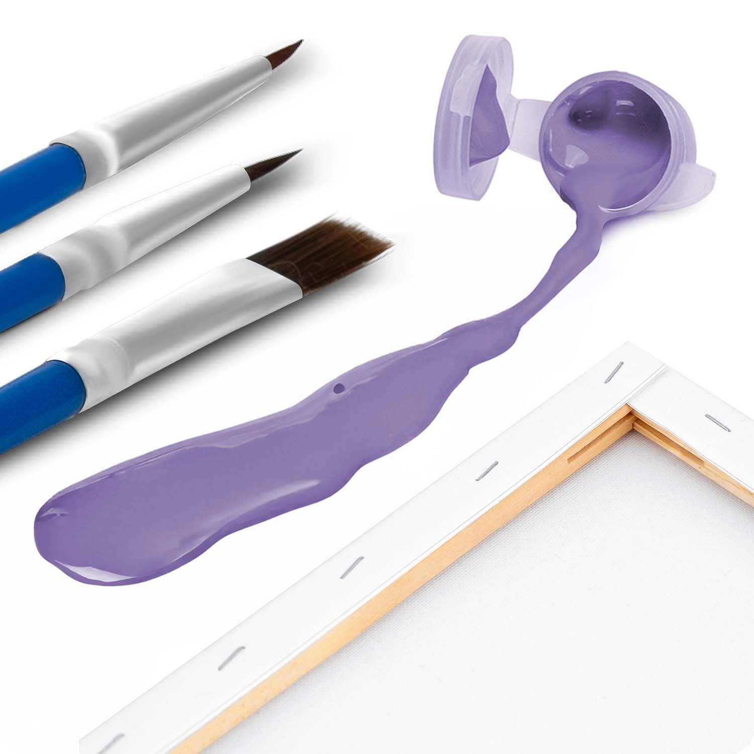- Toile préimprimée, légende des couleurs, set de peintures acryliques, 3 pinceaux, kit de suspension