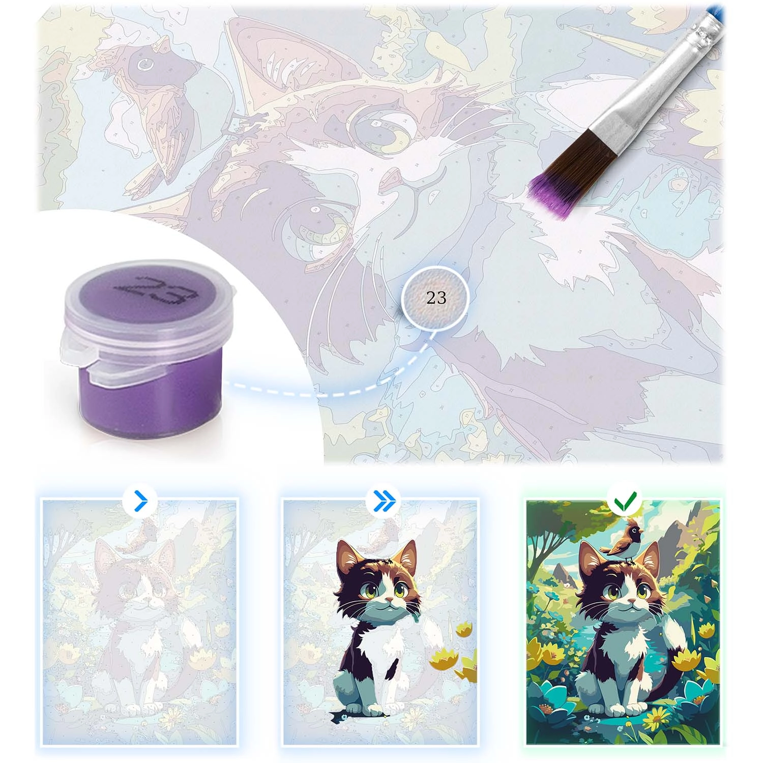 Créez votre propre tableau coloré de chaton et profitez d’une expérience créative relaxante. La toile sur châssis en bois (châssis entoilé) est prête à peindre, la sous-couche délicatement teintée facilite le recouvrement des bords et aide à un rendu net. Les couleurs riches et bien pigmentées ont une texture agréable et ne nécessitent pas de dilution.