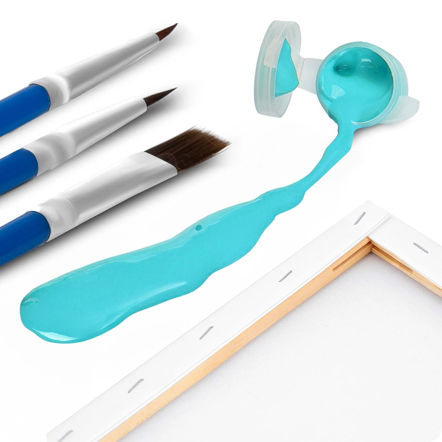 Toile préimprimée sur châssis, 30 peintures acryliques opaques, 3 pinceaux et des crochets – ouvrez et peignez sans achats supplémentaires.