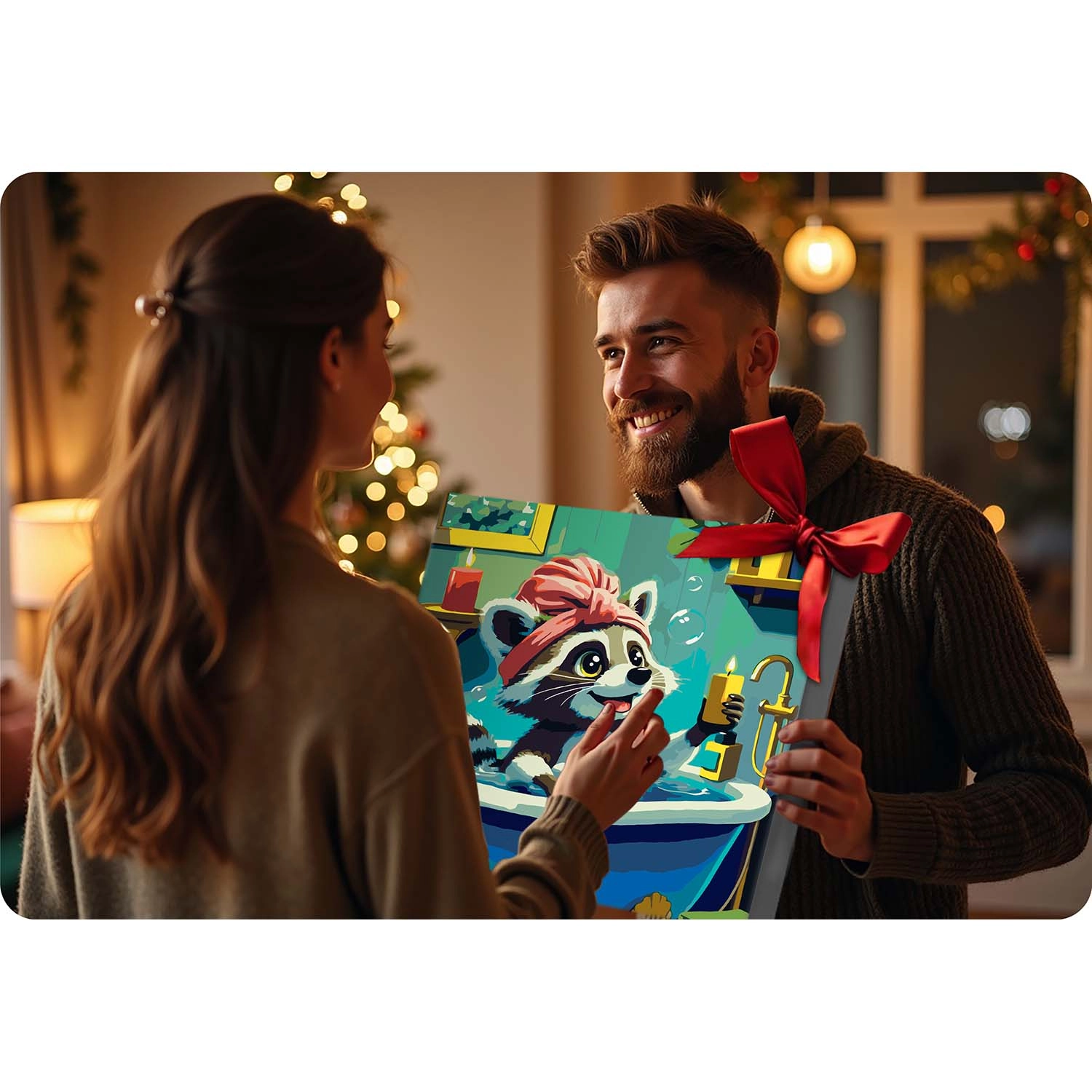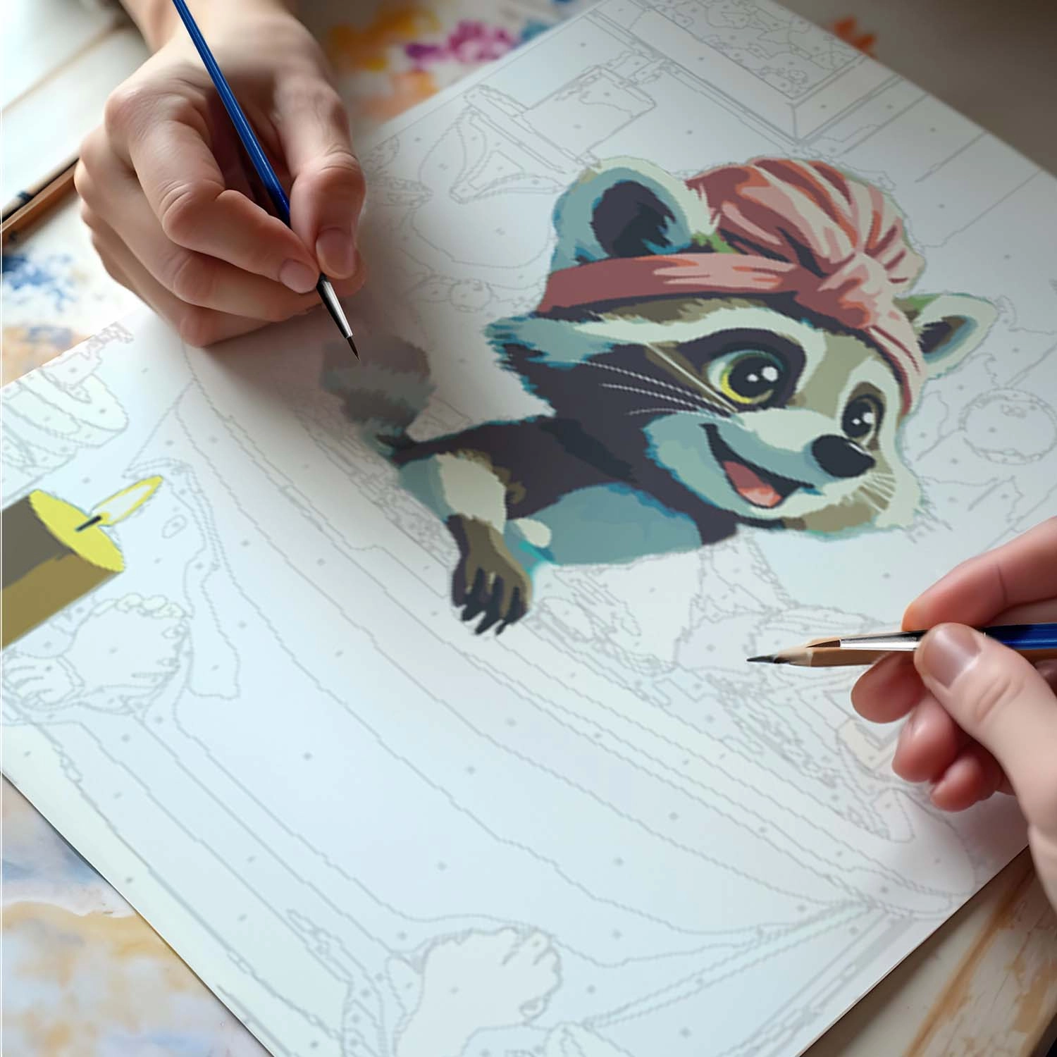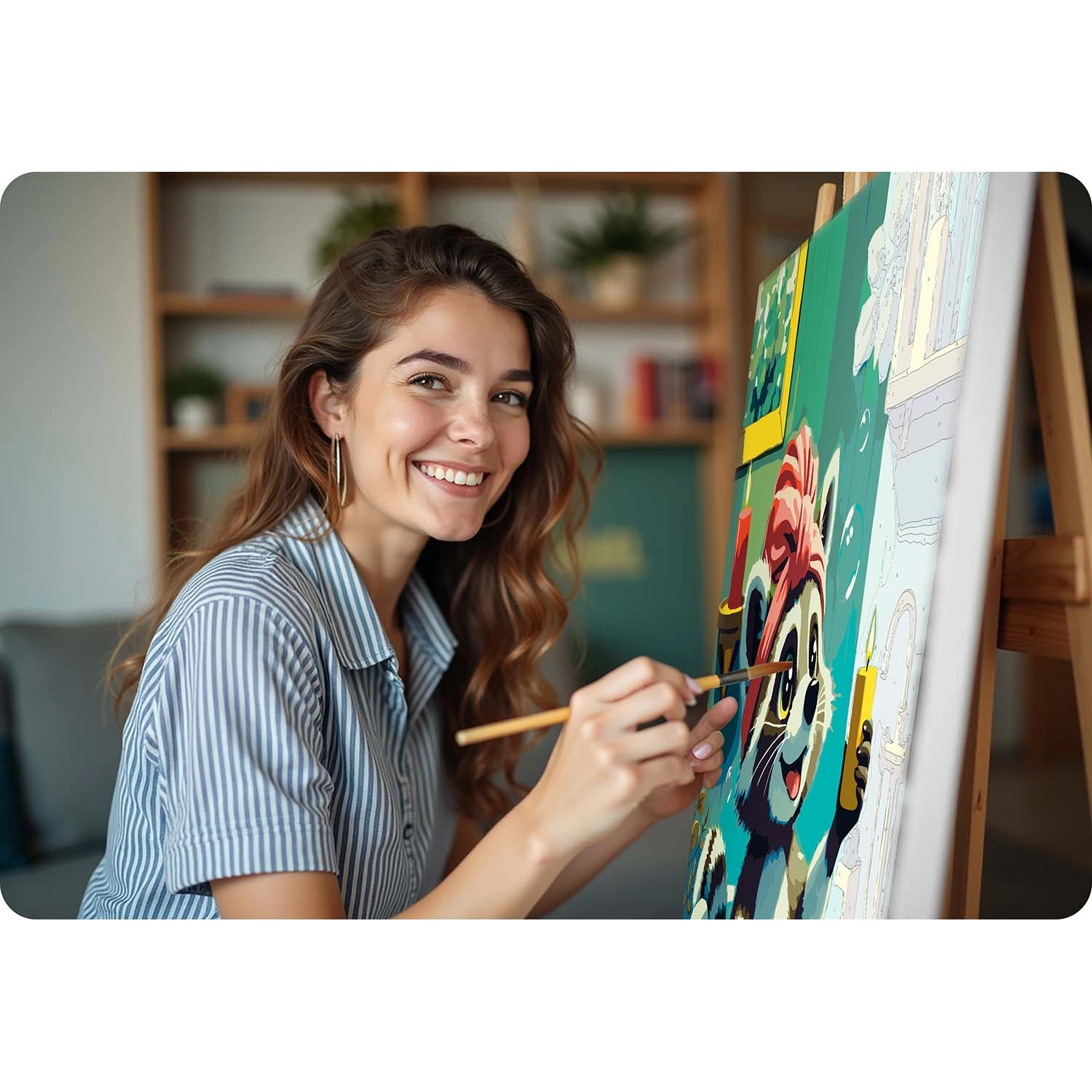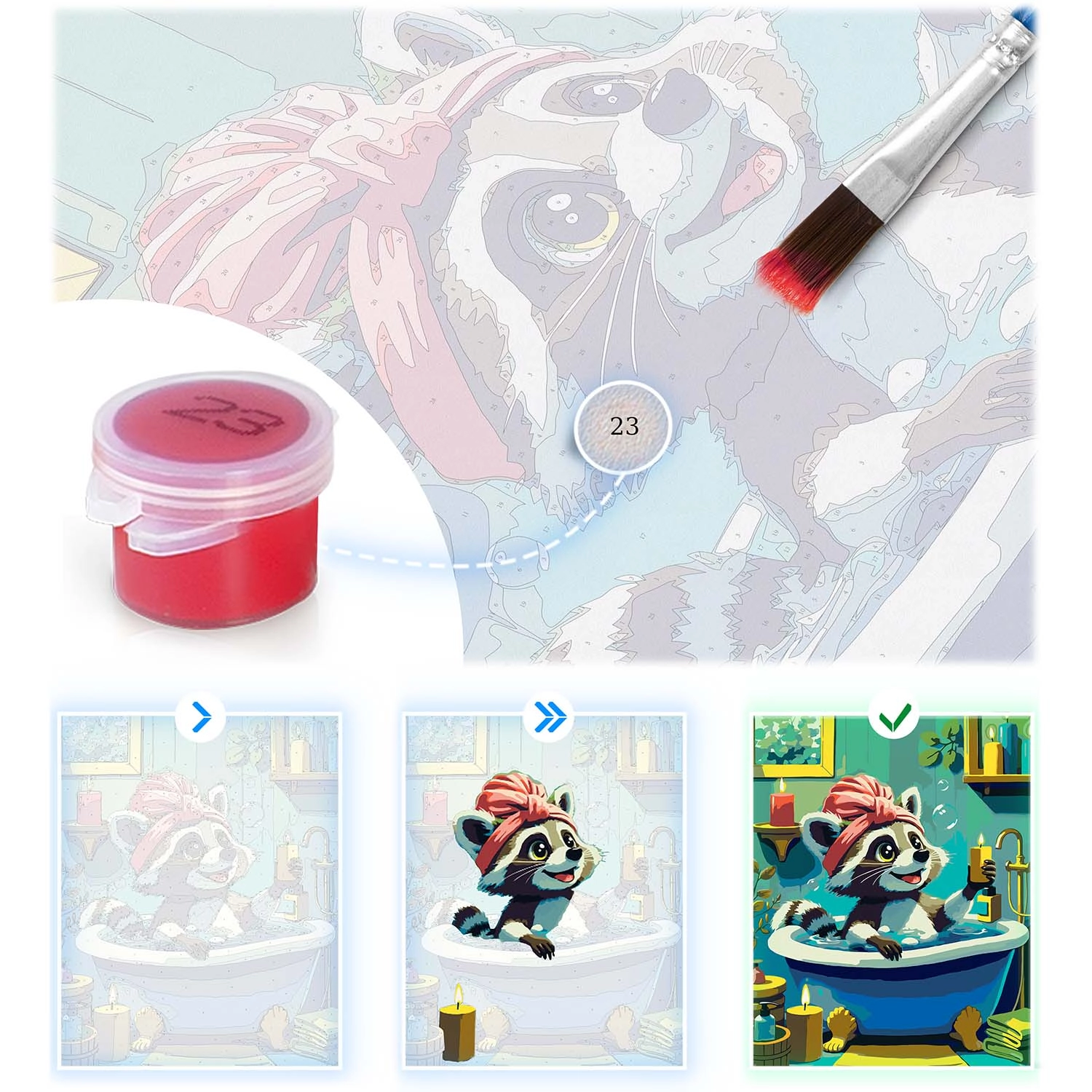Le kit de peinture par numéros au motif d’un adorable raton laveur offre une expérience créative relaxante et un résultat que vous accrocherez fièrement au mur. La toile préimprimée avec fond coloré et chiffres lisibles vous guide pas à pas vers une belle œuvre aux couleurs intenses et à fort pouvoir couvrant. Pas besoin d’être artiste – il suffit d’associer le numéro de peinture à la zone et de peindre.