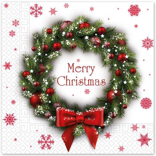 Des serviettes en papier de Noël au motif de couronne qui apportent une touche festive élégante à votre table. Elles sont 3 plis, agréablement douces et résistantes, au format universel 33 × 33 cm et en paquet de 20 pièces – idéales pour les repas en famille et les réceptions de fête.