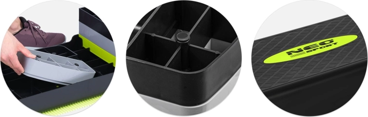 Entraînez-vous efficacement et en toute sécurité avec le step d’aérobic NEO SPORT, robuste et fiable. Grâce aux réhausses réglables, vous adaptez facilement l’intensité, tandis que la texture antidérapante et la base stable assurent un appui sûr à chaque mouvement. Le matériau est résistant, imperméable et facile à nettoyer, idéal pour une utilisation quotidienne à domicile.
