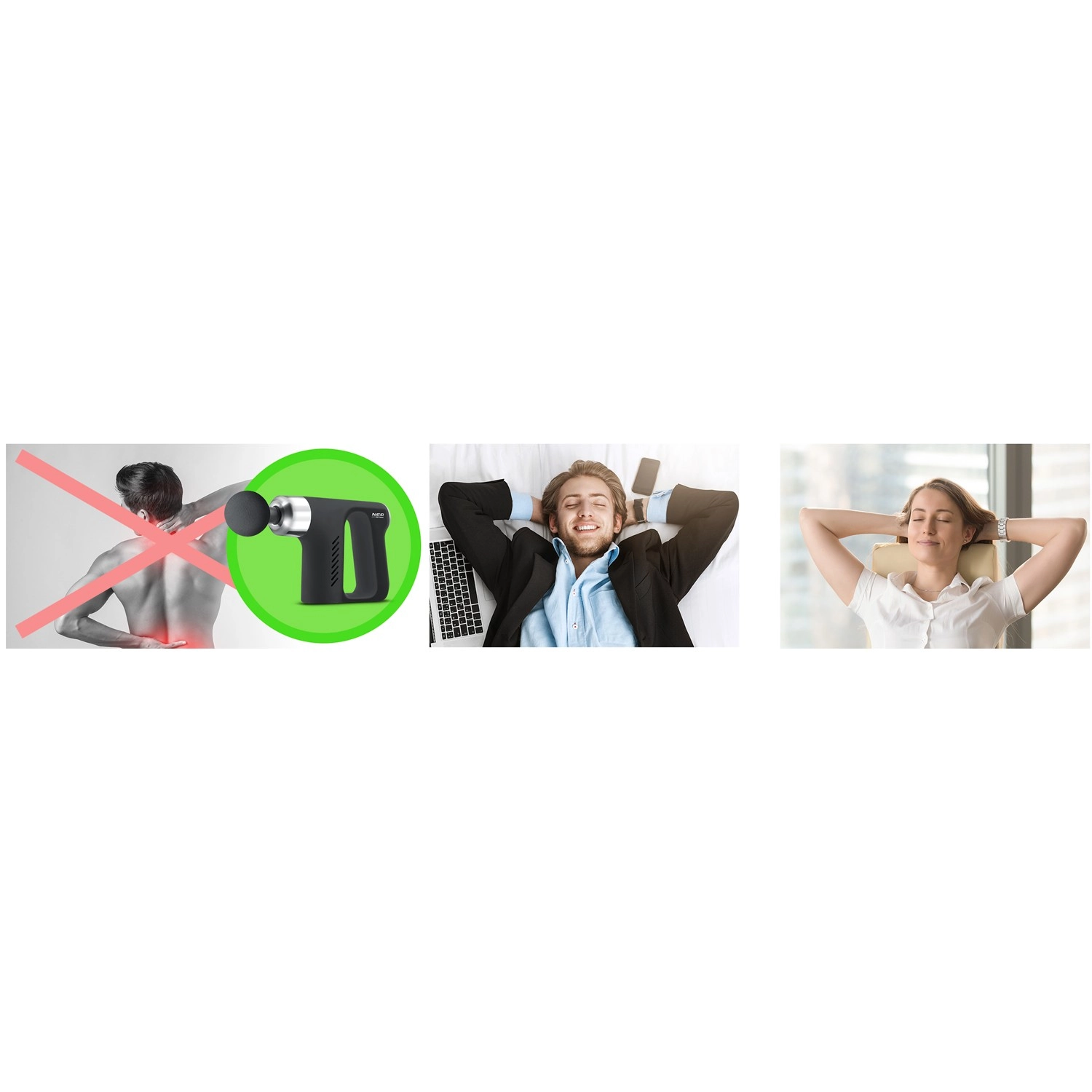 - Soins musculaires complets : relaxation, récupération active, stimulation de la circulation et libération des points gâchettes.