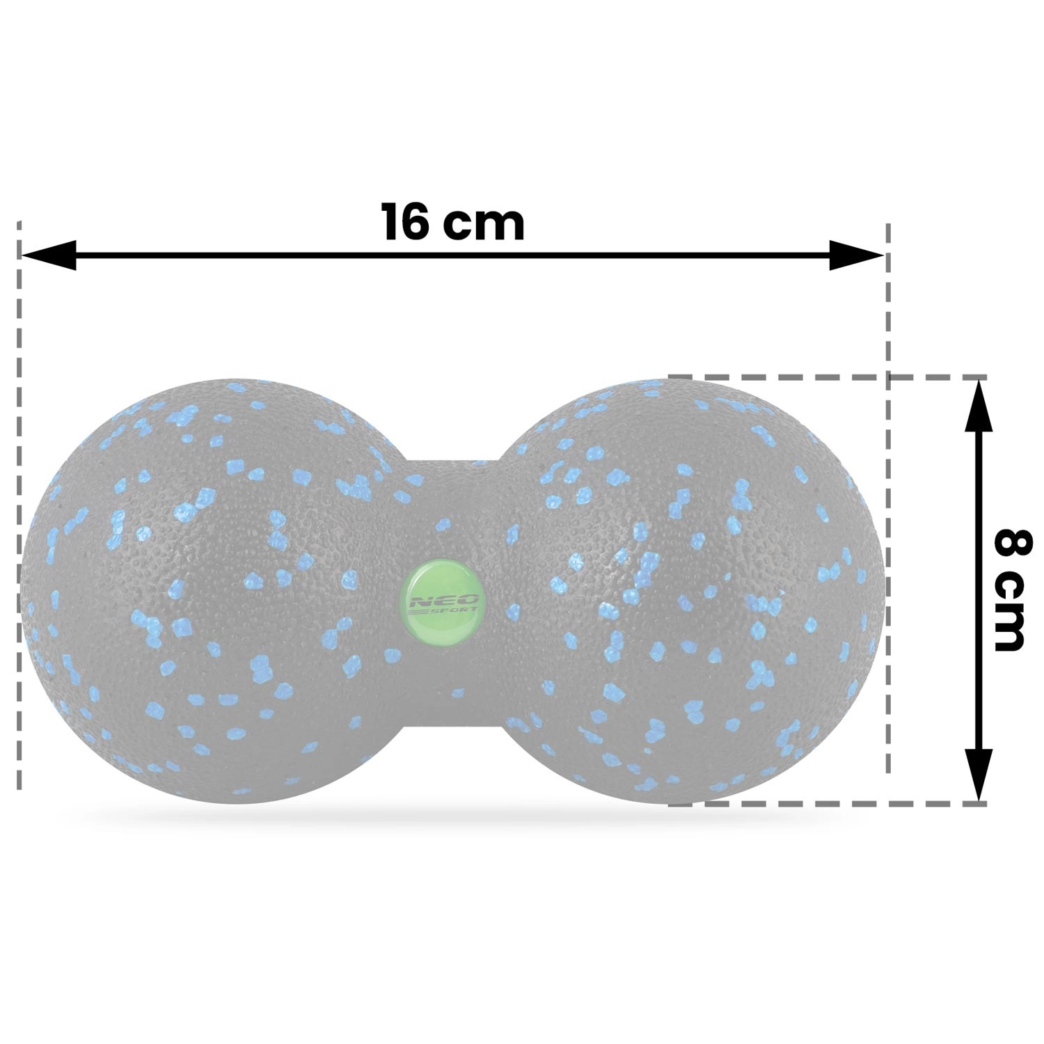 Soulagez les tensions et accélérez la récupération avec la balle de massage double « peanut » NEO-SPORT. Grâce à sa forme ergonomique avec gorge pour la colonne vertébrale, sa mousse EPP rigide et ses dimensions compactes 8 × 8 × 16 cm, elle cible en profondeur les muscles, est imperméable, facile à nettoyer et convient au training, à l’échauffement, aux étirements et à la rééducation – à la maison, en salle ou en extérieur.