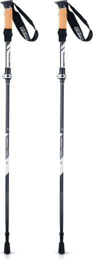 Bâtons de trekking légers et résistants pour la randonnée et l’alpinisme avec réglage continu de la longueur 85–130 cm. Ils offrent une poignée ergonomique en liège, un système rapide Click&Go pour le pliage et le réglage, un poids réduit grâce à l’aluminium AL 7075 et un jeu d’embouts interchangeables pour l’asphalte, la pierre, la boue, le sable et la neige. Inclus étui de transport.