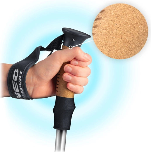 Le liège respirant garde les mains au sec et à une température agréable. La dragonne souple et réglable assure une prise sûre sans surcharge des paumes.