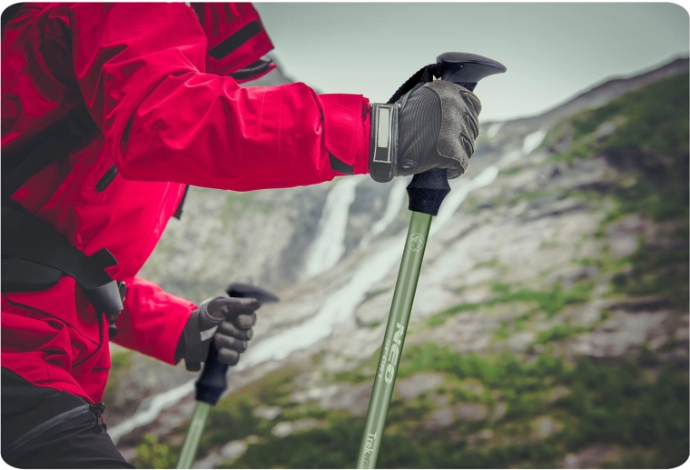 L’amortissement ANTYSHOCK™ atténue efficacement les chocs, réduit les vibrations et ménage les articulations et les muscles lors de longues marches. La poignée ergonomique en mousse EVA est respirante, sèche rapidement et offre une prise sûre. La dragonne souple et réglable stabilise la main sans besoin de serrer fortement.