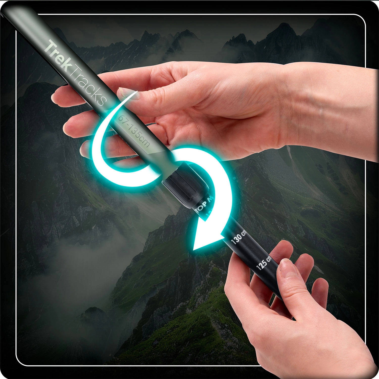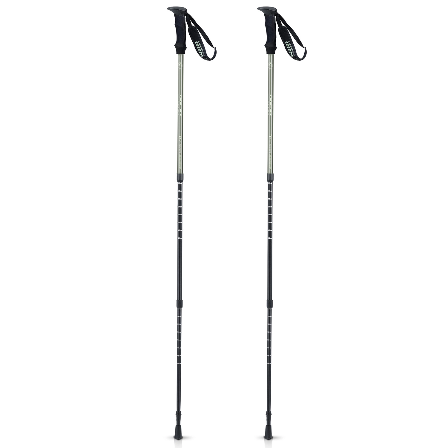 Bâtons en aluminium en trois segments, en alliage durable AL 7075, faciles à régler selon le terrain et la taille. Leur faible poids facilite le transport dans le sac à dos.