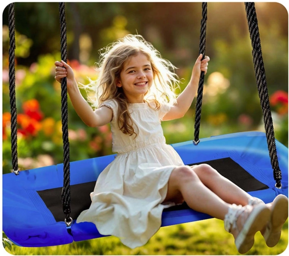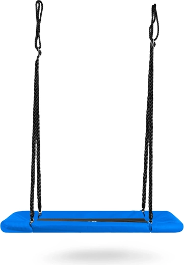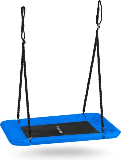 Grande balançoire rectangulaire de type « nid » offrant une assise spacieuse et confortable pour enfants et adultes. Grâce au siège imperméable Oxford 600D, au cadre en acier robuste avec revêtement en mousse et aux cordes solides et réglables, elle est idéale pour un amusement extérieur en toute sécurité. Se nettoie facilement et supporte jusqu’à 150 kg.