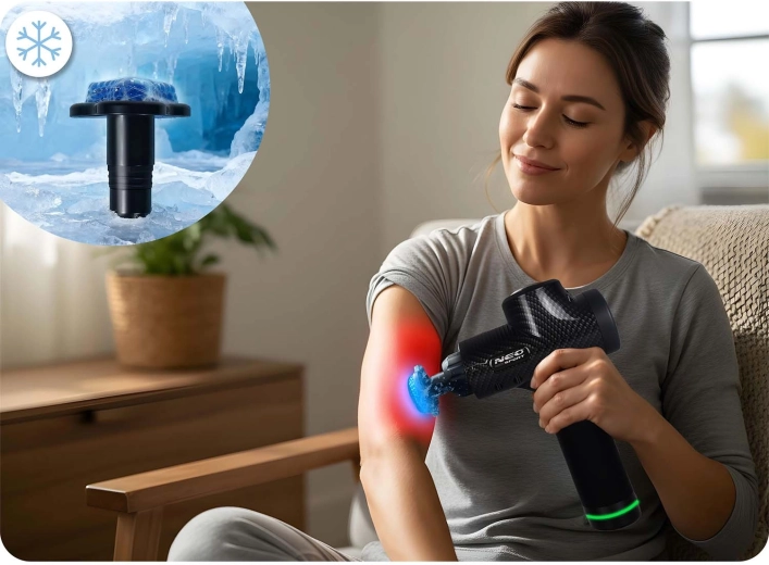 - Tête gel réfrigérante : après refroidissement préalable, elle apaise les irritations, réduit les gonflements et les inflammations – idéale après une surcharge ou un effort intense.