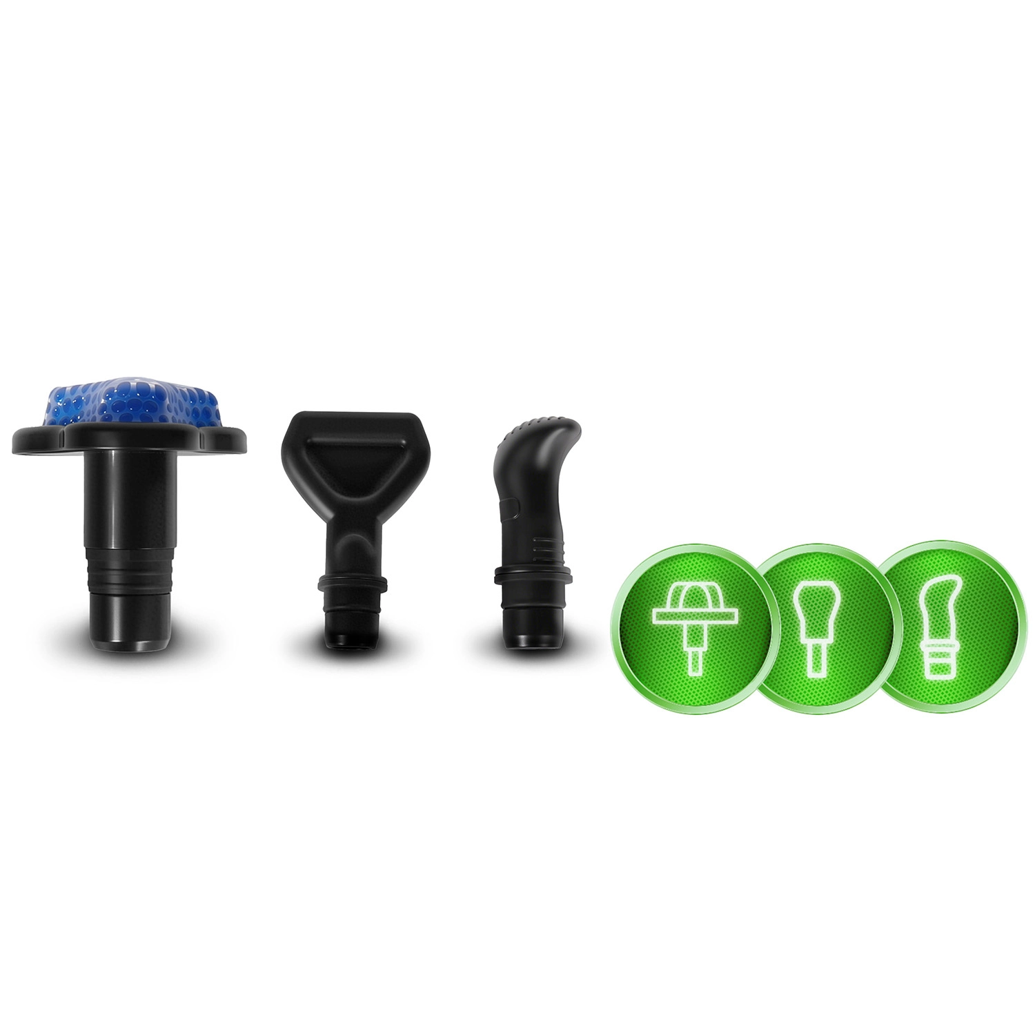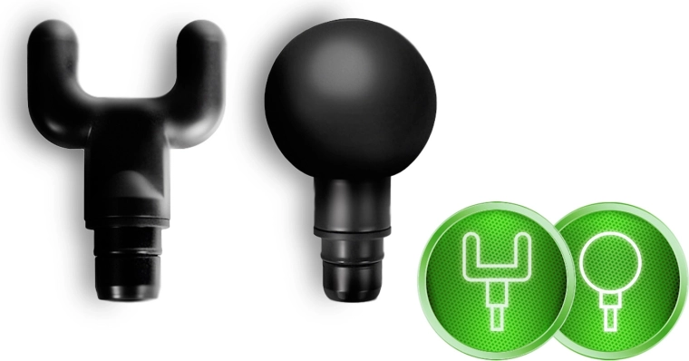 U pour la zone près de la colonne vertébrale, rond pour les grands groupes musculaires, plat pour une relaxation polyvalente, pointe pour un massage ponctuel intense, gel réfrigérant, spatule pour les structures osseuses longitudinales, doigt pour une pression précise, double champignon pour stimuler la circulation et champignon souple pour les zones sensibles.
