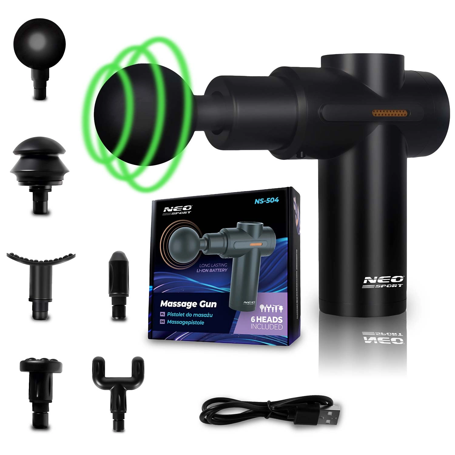 Le pistolet de massage NS-504 aide à une récupération plus rapide après l’entraînement, au relâchement des tensions après le travail et à la relaxation. Grâce à six modes, vous réglez facilement l’intensité, d’un léger échauffement avant l’étirement à un massage percussif profond pour libérer les zones tendues.