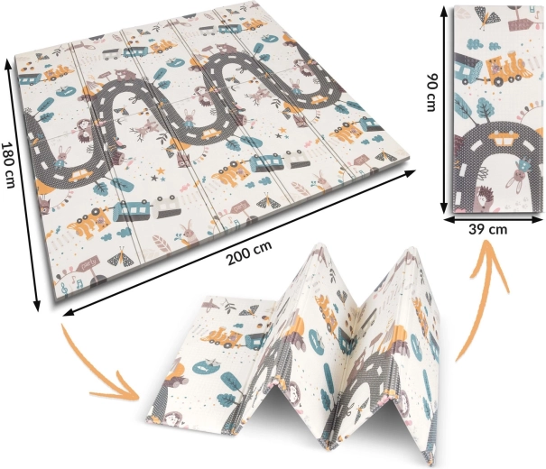 Découvrez le tapis pour enfants Nukido, pratique et esthétiquement pensé, qui accompagne le développement des bébés et des préscolaires. Son design réversible alterne des motifs éducatifs à fort contraste et un thème routier et animalier ludique pour allier jeu et apprentissage. Le tapis est imperméable, facile à nettoyer et, grâce à sa construction pliable, vous l’emmenez partout – salon, chambre d’enfant, terrasse ou pique-nique.
