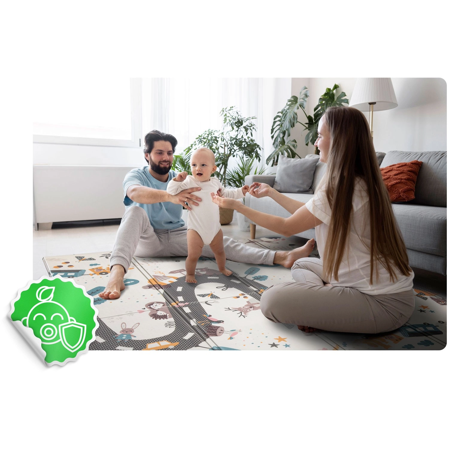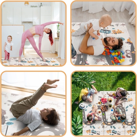 Conçu avec un soin particulier pour la communication visuelle et les besoins des enfants : finitions soignées, couleurs élégantes, certification européenne CE et tests EN71-1, EN71-2, EN71-3. Le tapis devient un accessoire stylé pour l’intérieur et une base fiable pour le jeu quotidien, l’exercice et les moments en famille.