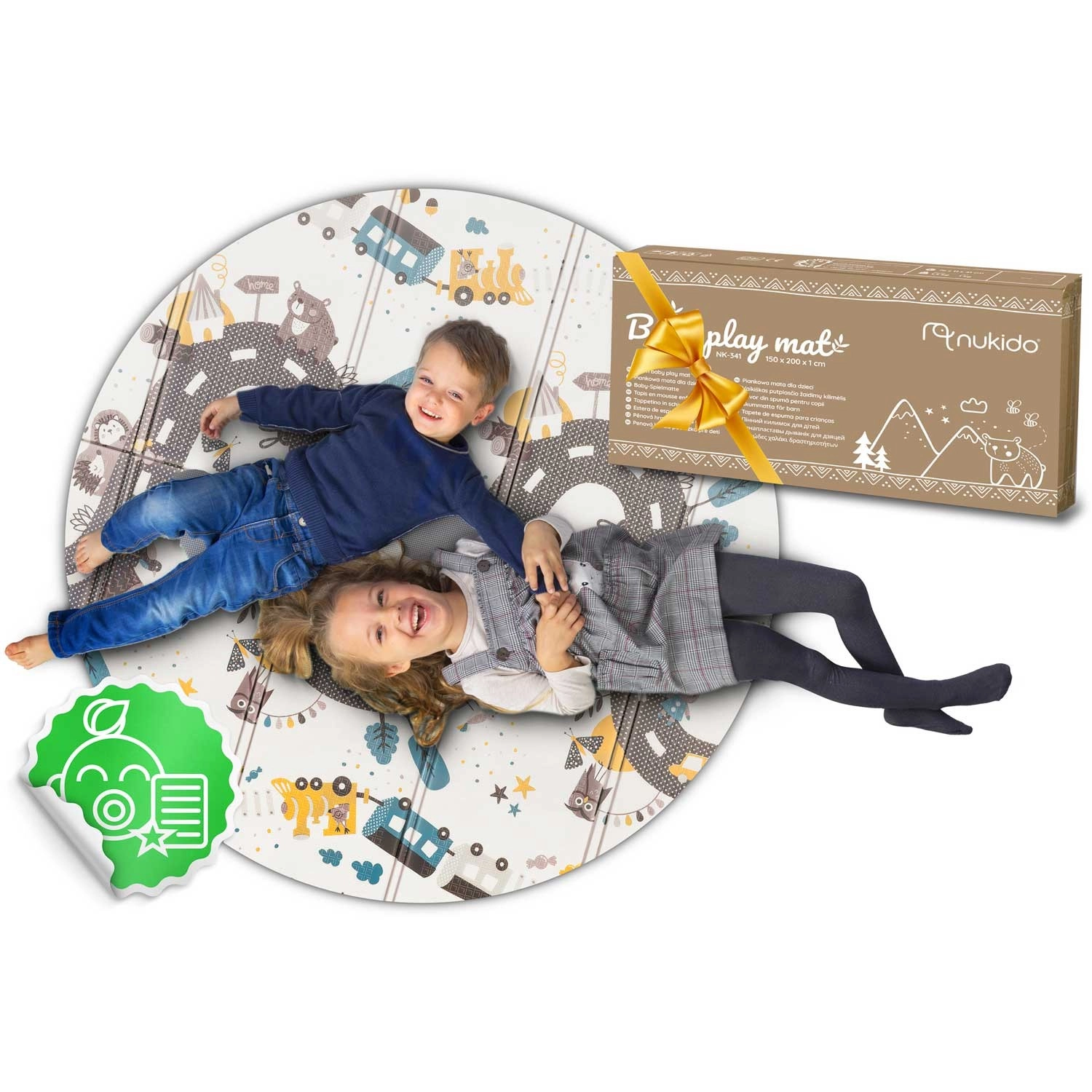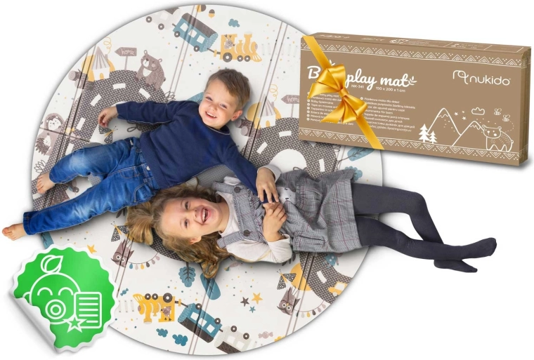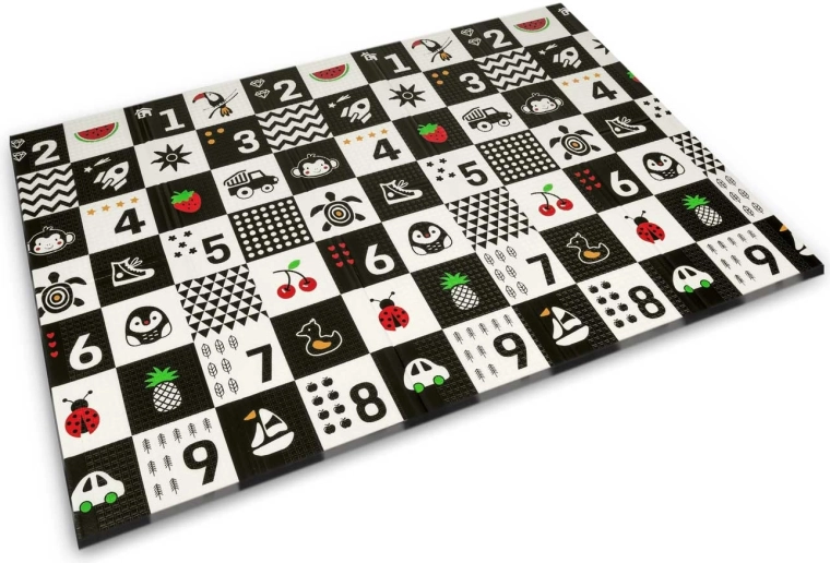 Ce grand tapis pliable en mousse NUKIDO se distingue par son épaisseur de 1 cm, garantissant un amorti fiable sur les sols durs et une isolation thermique contre le carrelage ou le parquet froid. Son imprimé réversible stimule les sens et l’imagination : une face propose un fort contraste avec chiffres et icônes pour l’apprentissage précoce, l’autre un motif route pour jouer avec des petites voitures et inventer des histoires.
