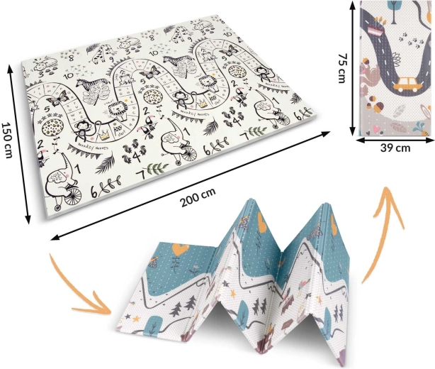 Le tapis pour enfants pliable Nukido aux dimensions 200 × 150 × 1 cm est idéal pour jouer en toute sécurité, ramper et faire ses premiers pas. Il offre un design réversible, un amorti des chocs grâce à 1 cm de mousse XPE, une surface antidérapante et un entretien facile. Il est sans BPA, PVC, phtalates et formamide, conforme à la norme EN71 et dispose de la certification CE.