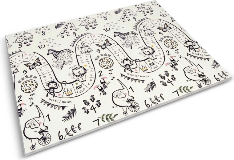 Les motifs réfléchis, conçus par une designeuse issue de l’Académie des beaux-arts, soutiennent le développement de la motricité fine et globale et encouragent l’apprentissage et le mouvement de façon ludique. Le tapis possède une surface imperméable et lavable avec un léger relief pour une démarche assurée et un entretien simple.