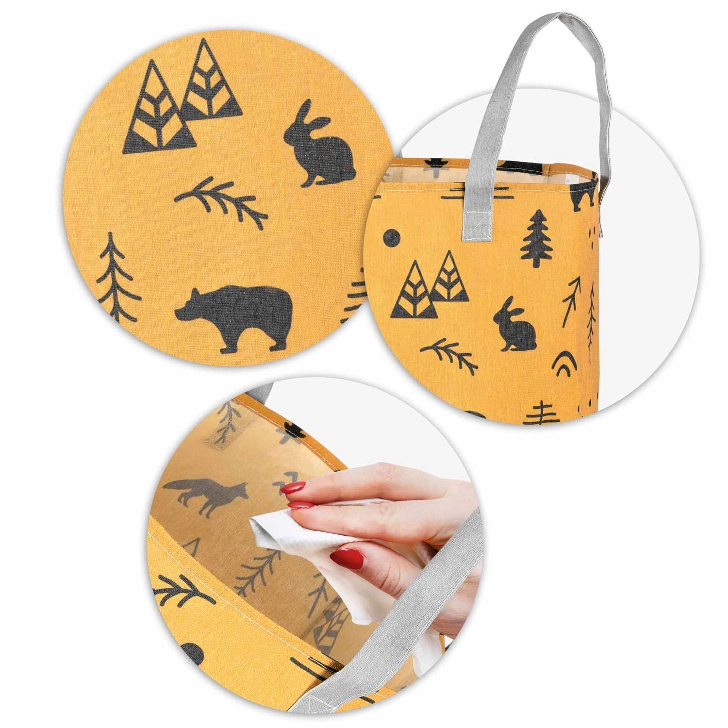 Faites du rangement un moment ludique. Le panier textile à jouets NUKIDO avec imprimé jaune aux motifs forestiers est conçu pour être à la fois fonctionnel, durable et esthétique. Grâce à sa forme cylindrique haute et à son ouverture supérieure, vous y rangez facilement peluches, blocs et petites bricoles – et vous les récupérez en un clin d’œil.